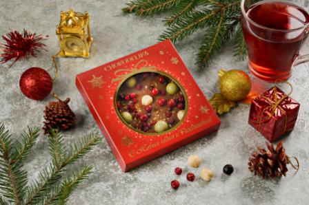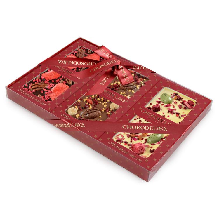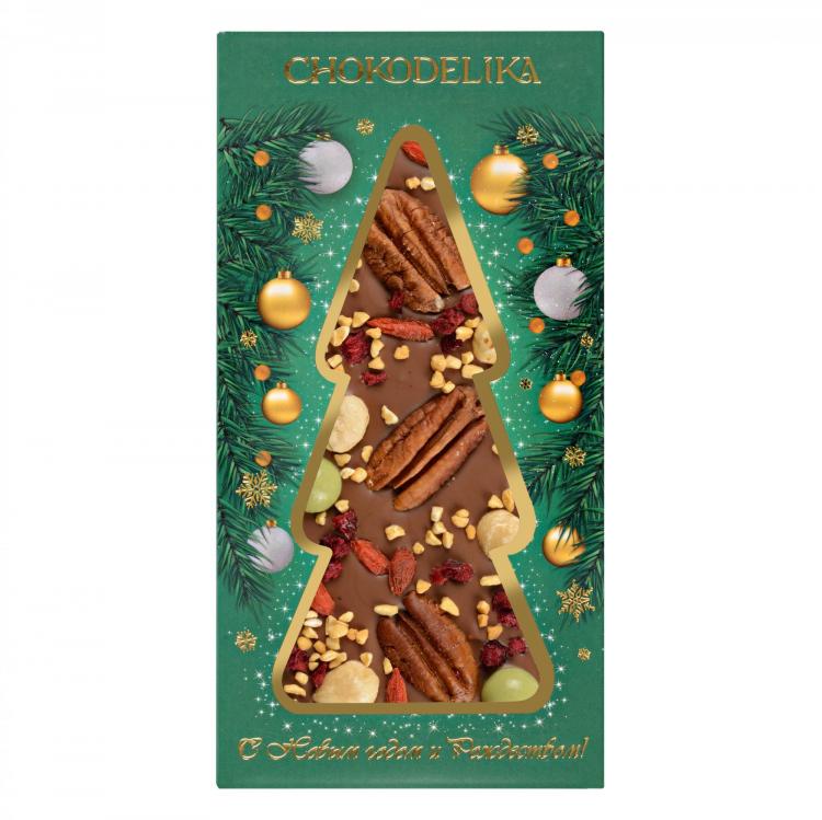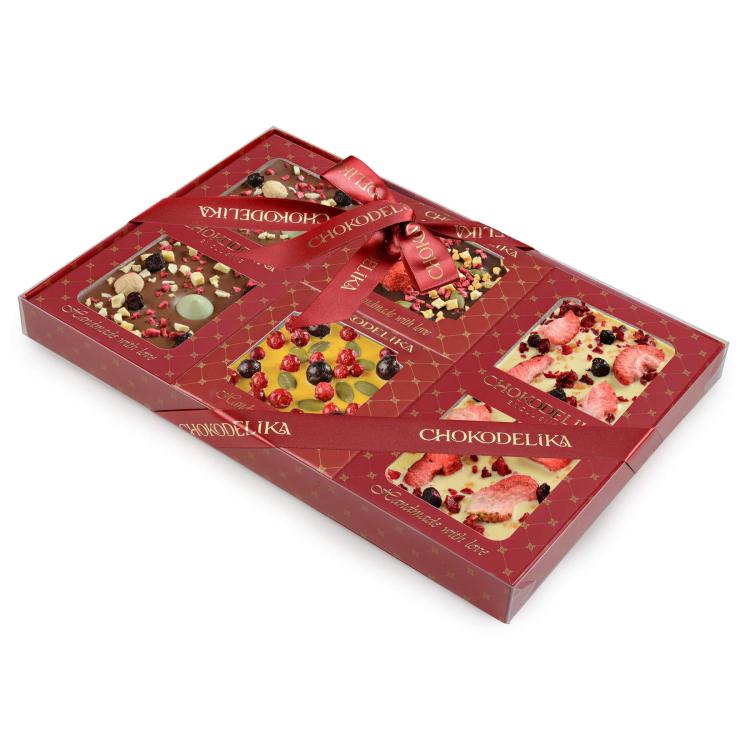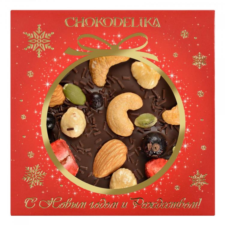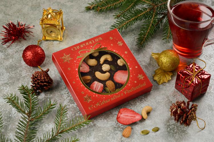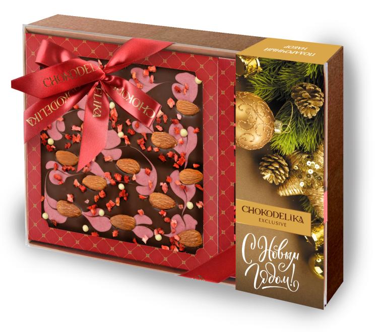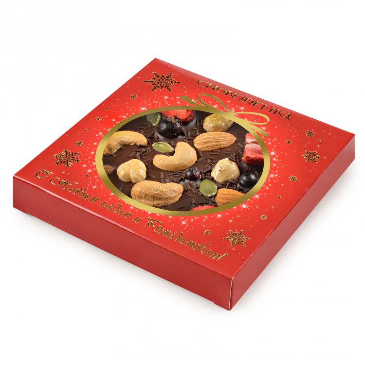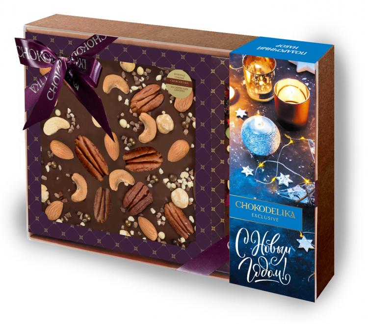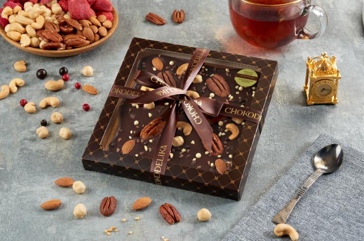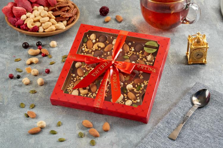 Уникальные шоколадные наборы с украшением из фруктов, ягод и орехов, 180г.