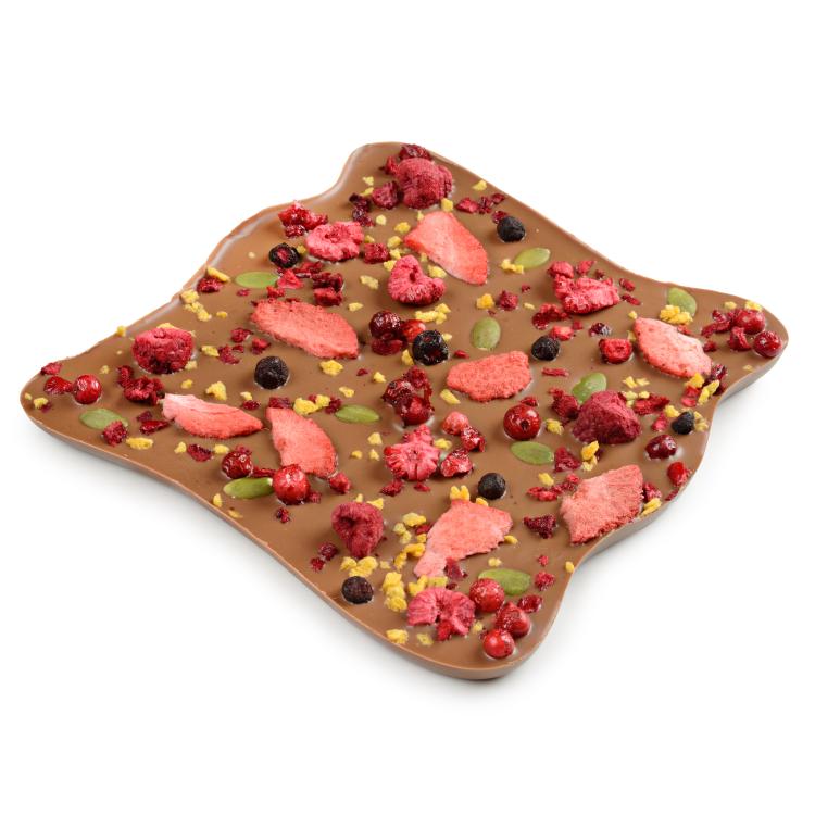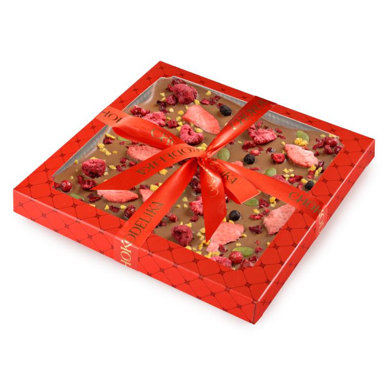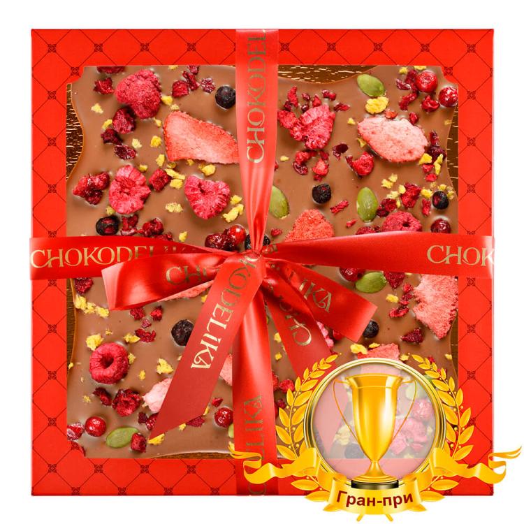 Восхитительная плитка шоколада «Бэррифэст» - это не просто сладость, это настоящий шедевр, созданный руками наших талантливейших шоколатье! Премиальный бельгийский шоколад, щедро украшенный коллекцией отборных сублимированных ягод – это не только фантастически красиво, но и восхитительно на вкус! Мы используем только самые лучшие ингредиенты, чтобы создать истинное произведение искусства! «Бэррифэст» украсит любой стол и станет непревзойденным подарком к любому празднику. Так что, если вы еще не попробовали наш темный шоколад с сублимированными ягодами, то скорее заказывайте его и наслаждайтесь настоящим вкусом высококлассного шоколада!