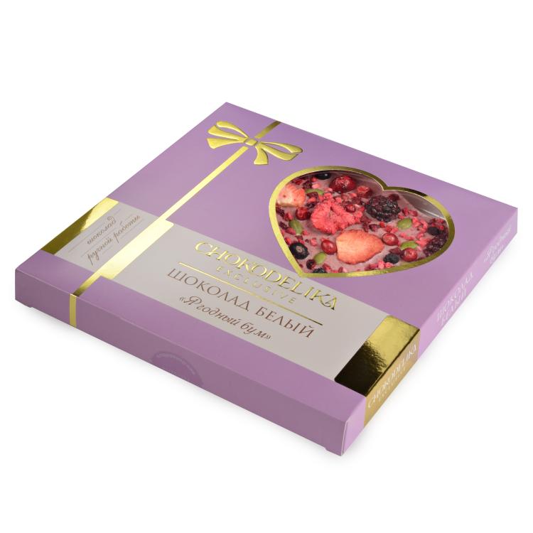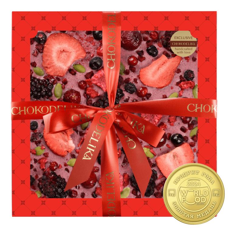 - это изысканный десерт для любителей контрастных вкусов. В основе этого шоколада - белый бельгийский шоколад с нежным вкусом и ароматом ягод. Украшение "