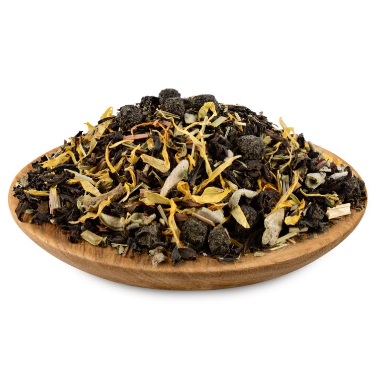 Состав: Чай индийский, арония, мелисса, шалфей, чабрец, лимонная трава, мята, лепестки календулы, лист крапивы.