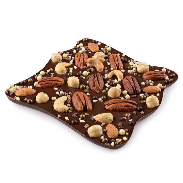 Уникальные шоколадные плитки с украшением из фрукто, ягод и орехов.