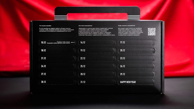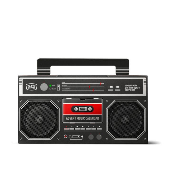 В этот раз мы подошли к идее максимально музыкально: коробка стилизована под ретро-магнитофон, а каждый дрип-пакет — под кассету. Мы сохранили ежегодную традицию и подобрали уникальный трек для каждого дрипа, чтобы сделать процесс заваривания ещё приятнее и создать новогоднее настроение.
