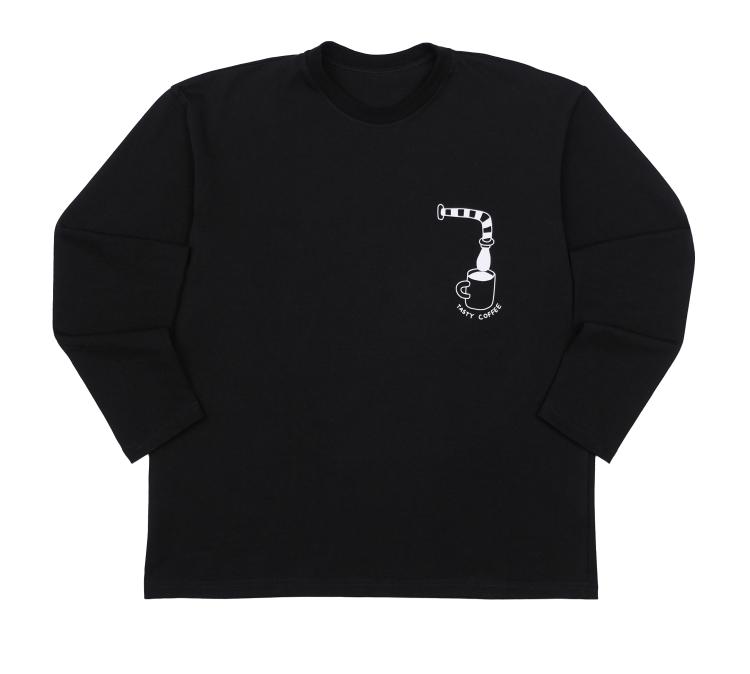 В итоге на принтах получилось изобразить целый мир, который хочется рассматривать и изучать. На лонгсливах мы отразили пространство внутри нашего производства, а на футболках — пространство вокруг нас. Этот мир населяют персонажи — их мы показали через буквы нашего логотипа, которые оживили.