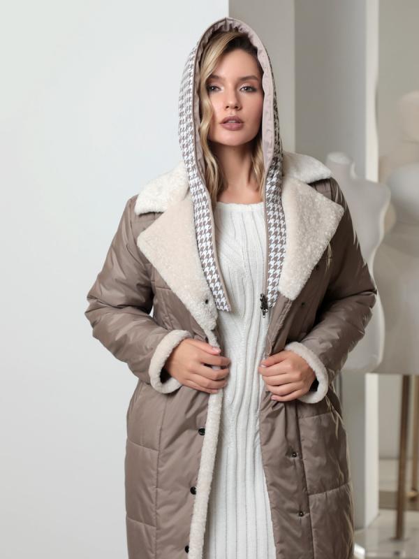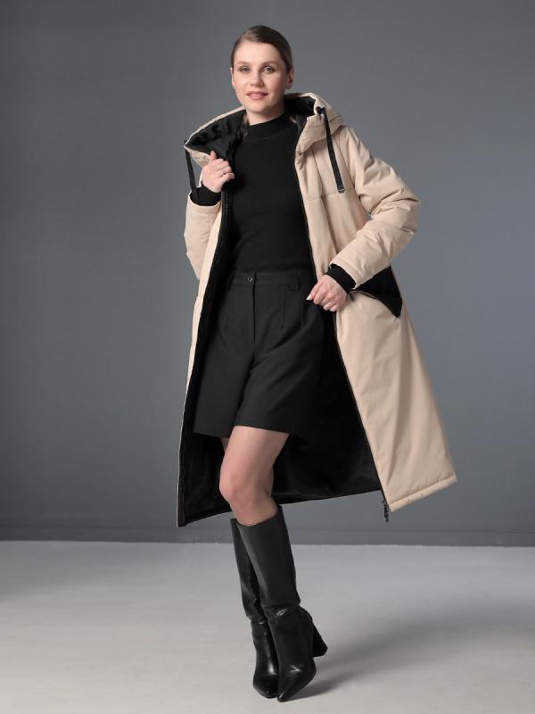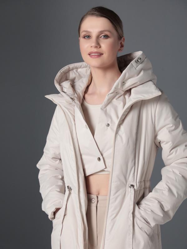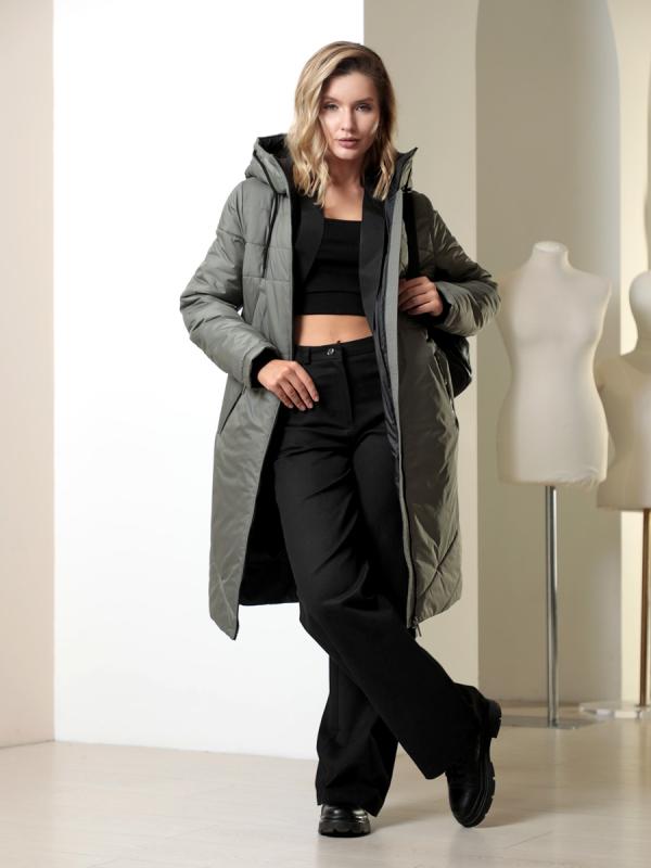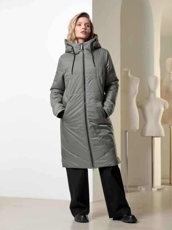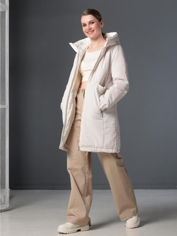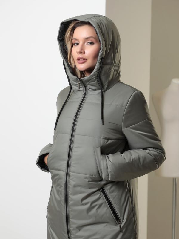 Пальто средней длины полуприлегающего силуэта с застежкой на двухзамковую молнию, обеспечивающую удобство при ходьбе. Воротник - стойка, переходящая в регулируемый капюшон. Удобно расположенные прорезные карманы застегиваются на молнию. Есть внутренний кармашек, тоже на молнии. Длину втачного рукава можно регулировать посредством отворота. При желании можно с помощью кулиски менять ширину изделия по линии низа. Модель такого пальто с контрастной фурнитурой и внутренней отделкой практична и подходит для девушек и женщин разных возрастных категорий. Плащевая ткань имеет водоотталкивающую пропитку, выдержит небольшой осенний дождь. Хорошо зарекомендовавший себя утеплитель Холлофайбер плотностью 150 гр\м защитит от холода и ветра.