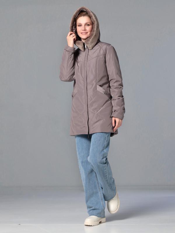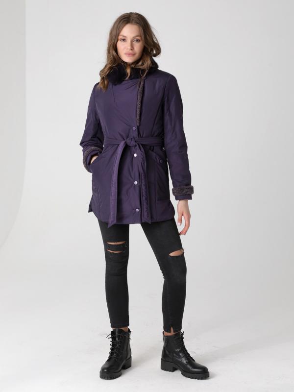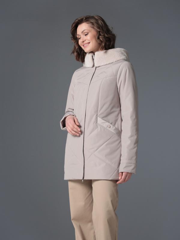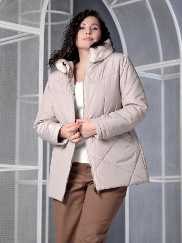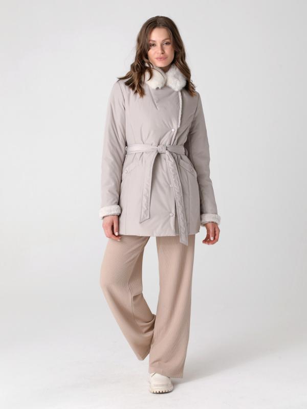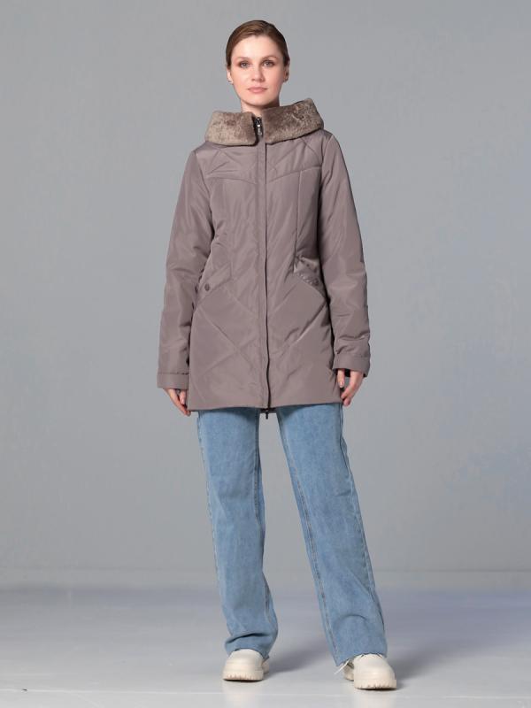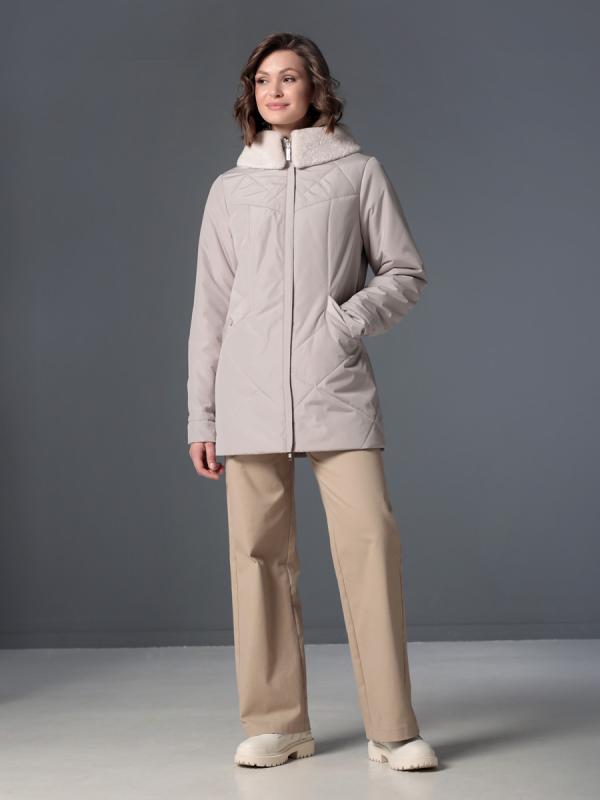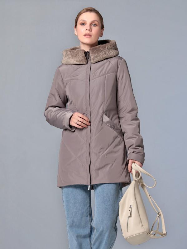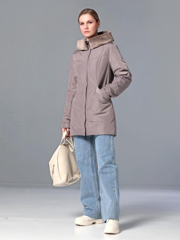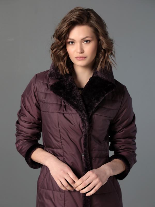 с возможностью фиксации лацкана на пуговицу. Удобно расположенные прорезные карманы застегиваются на молнию. Низ втачного рукава, край борта и воротник с лацканами выполнены из мягкого эко-меха, который хорошо стирается на рекомендованном режиме и не меняет свой внешний вид после высыхания. Плащевая ткань имеет водоотталкивающую пропитку, которая выдержит небольшой осенний дождь или снег. Хорошо зарекомендовавший себя утеплитель Холлофайбер плотностью 150 грм защитит от холода и ветра. Подкладка в изделии - в мелкую полоску. Выбирайте понравившийся цвет, подбирайте аксессуары, и Ваша осень будет стильной и комфортной!