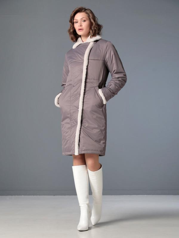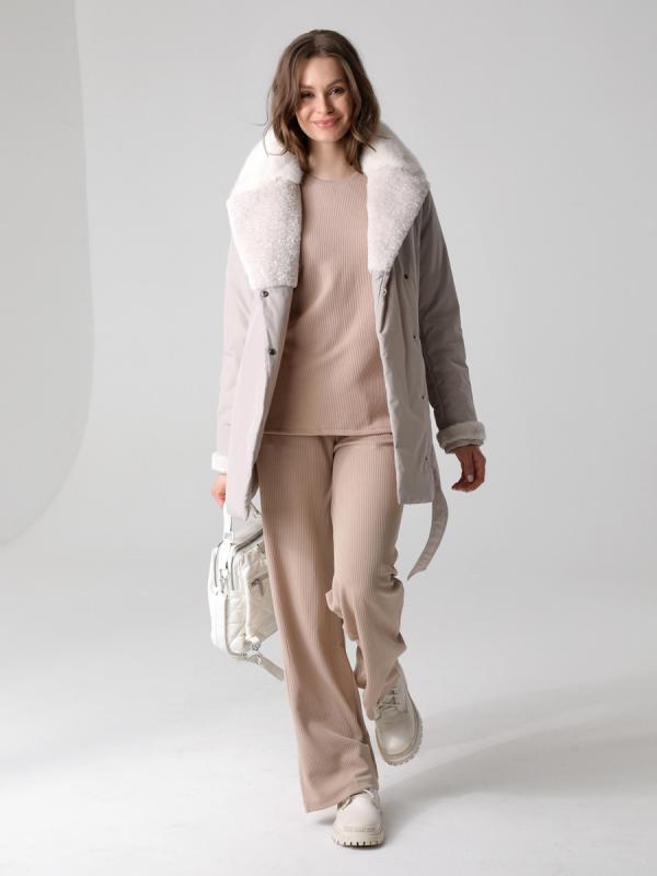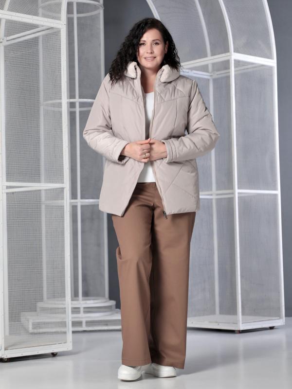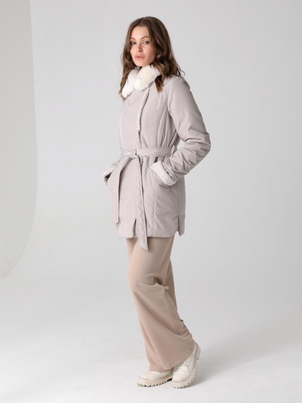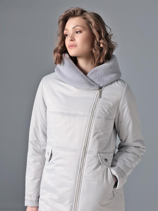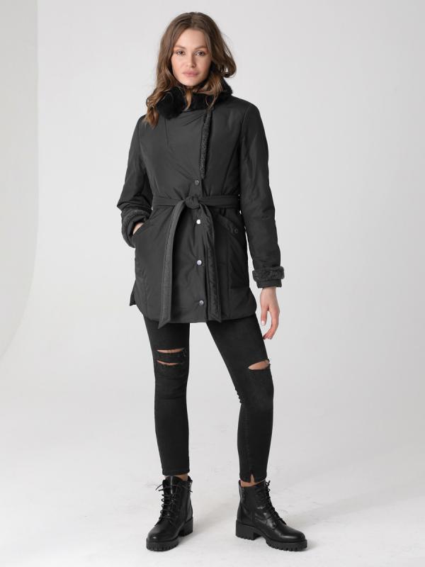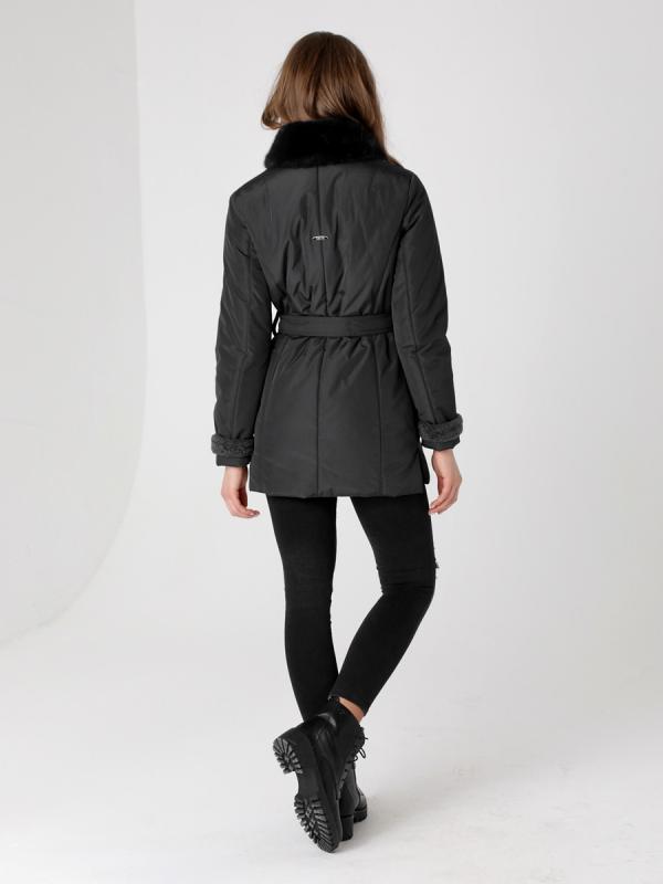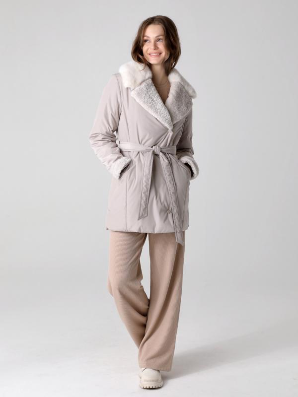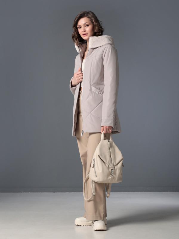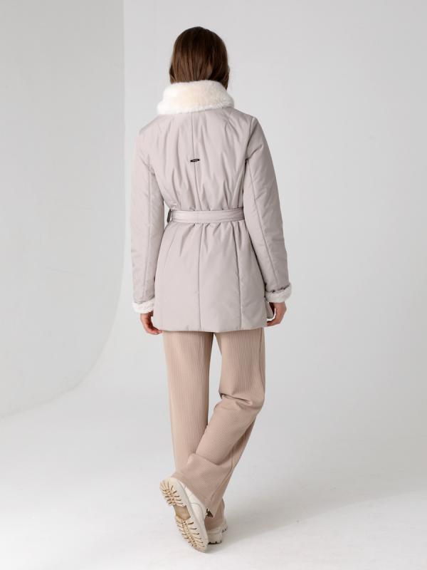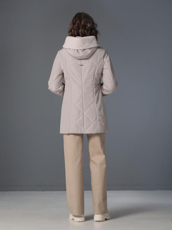 с возможностью фиксации лацкана на пуговицу. Удобно расположенные прорезные карманы застегиваются на молнию. Низ втачного рукава, край борта и воротник с лацканами выполнены из мягкого эко-меха, который хорошо стирается на рекомендованном режиме и не меняет свой внешний вид после высыхания. Плащевая ткань имеет водоотталкивающую пропитку, которая выдержит небольшой осенний дождь или снег. Хорошо зарекомендовавший себя утеплитель Холлофайбер плотностью 150 грм защитит от холода и ветра. Подкладка в изделии - в мелкую полоску. Выбирайте понравившийся цвет, подбирайте аксессуары, и Ваша осень будет стильной и комфортной!