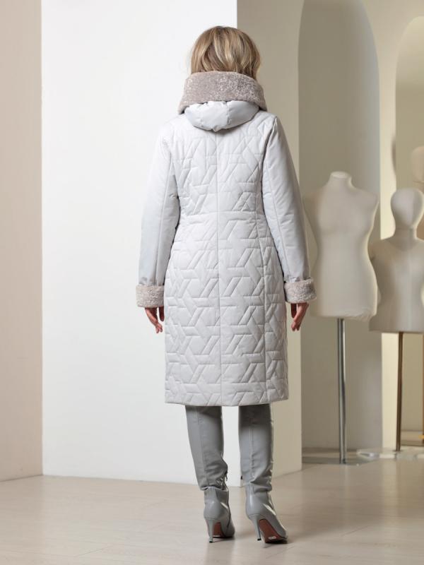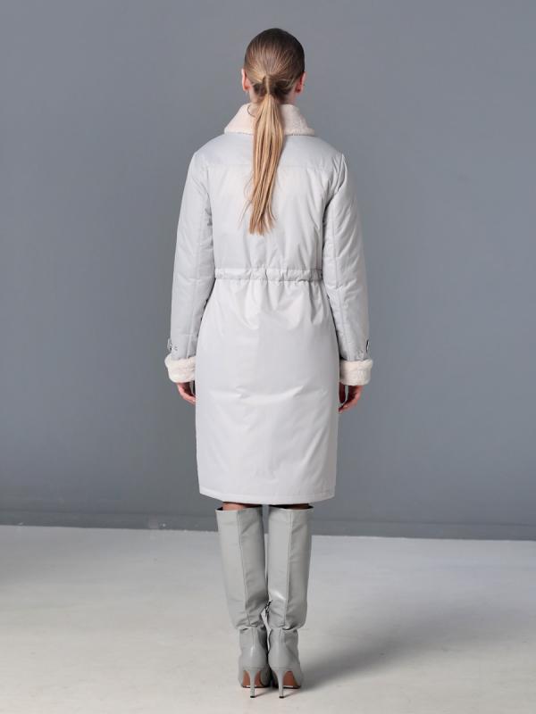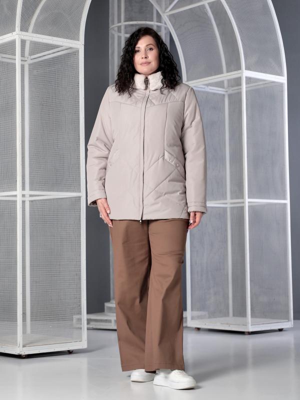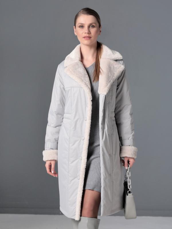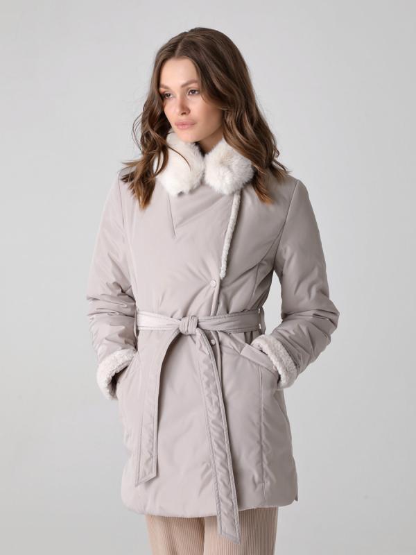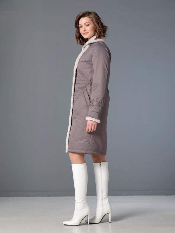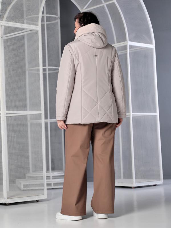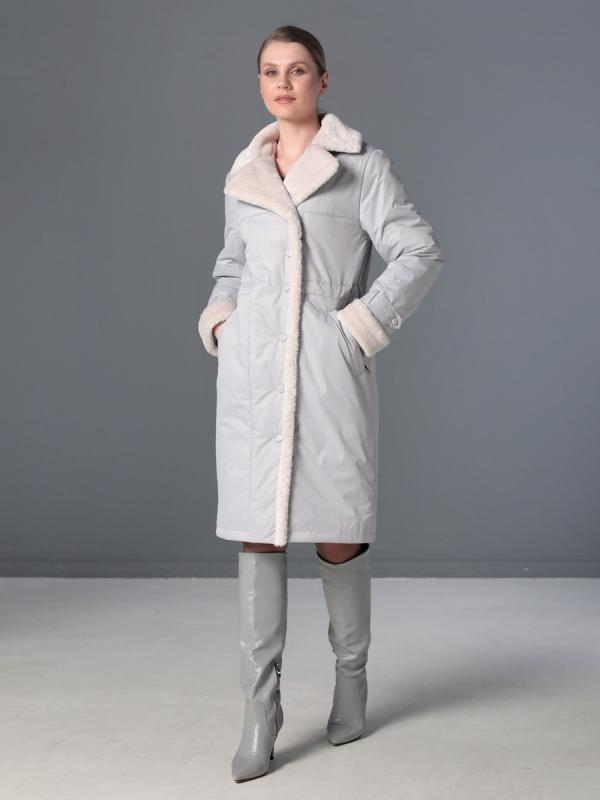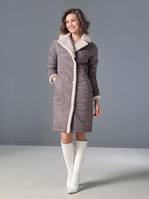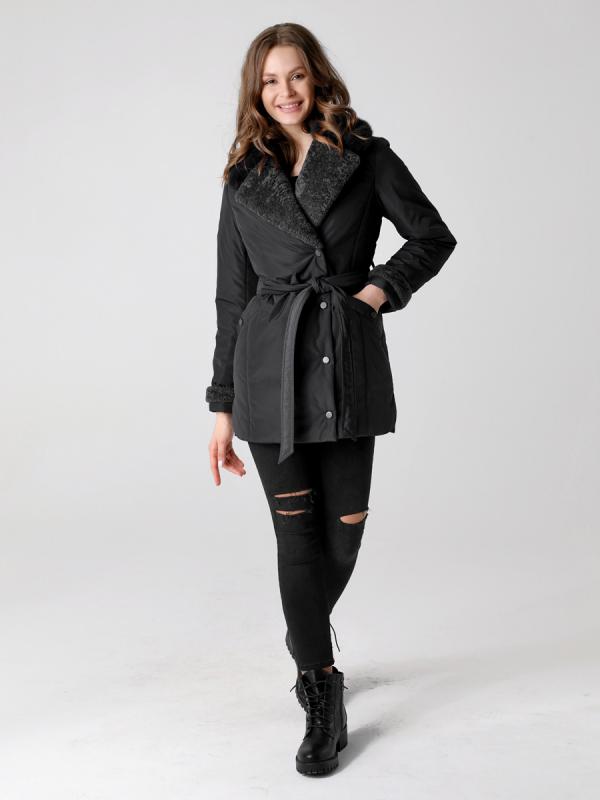 с возможностью фиксации лацкана на пуговицу. Удобно расположенные прорезные карманы застегиваются на молнию. Низ втачного рукава, край борта и воротник с лацканами выполнены из мягкого эко-меха, который хорошо стирается на рекомендованном режиме и не меняет свой внешний вид после высыхания. Плащевая ткань имеет водоотталкивающую пропитку, которая выдержит небольшой осенний дождь или снег. Хорошо зарекомендовавший себя утеплитель Холлофайбер плотностью 150 грм защитит от холода и ветра. Подкладка в изделии - в мелкую полоску. Выбирайте понравившийся цвет, подбирайте аксессуары, и Ваша осень будет стильной и комфортной!