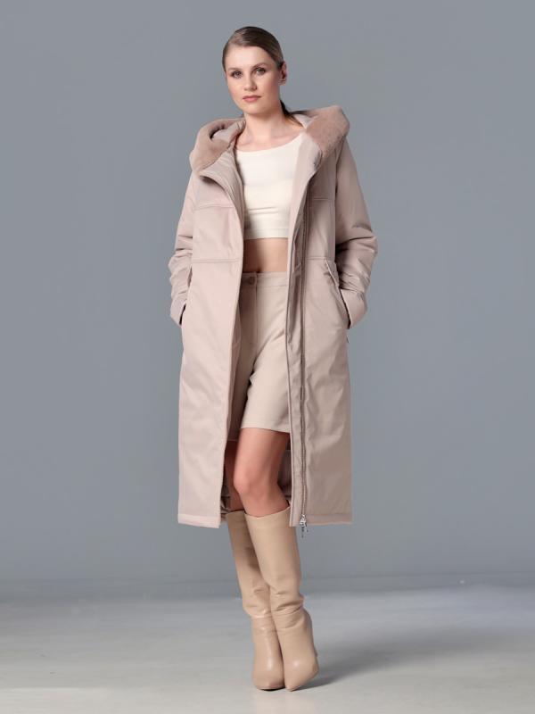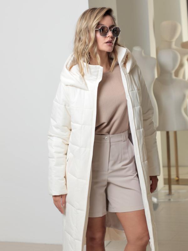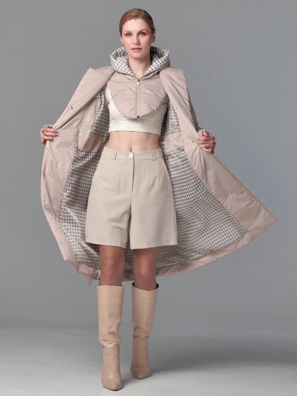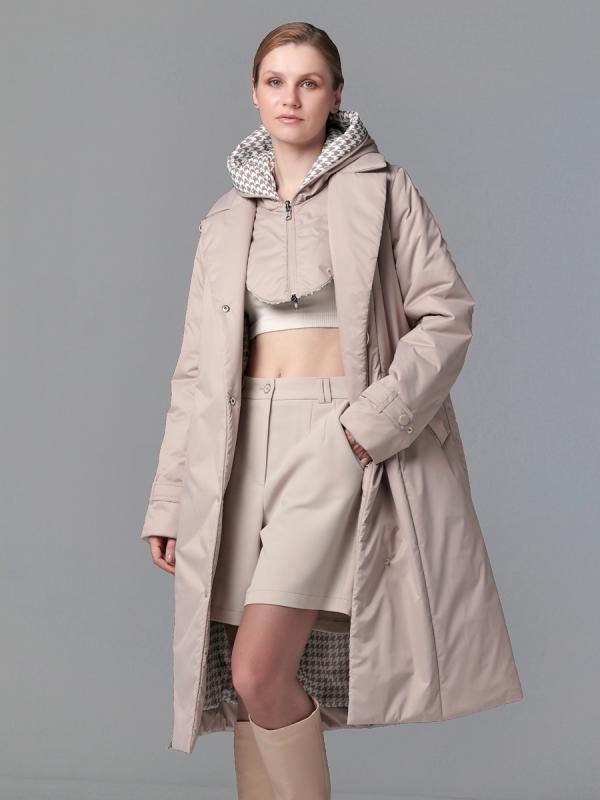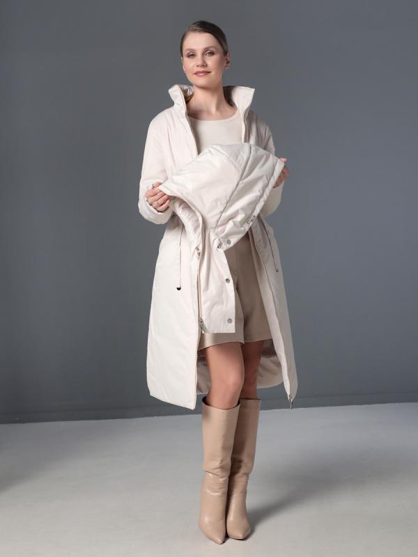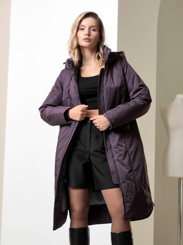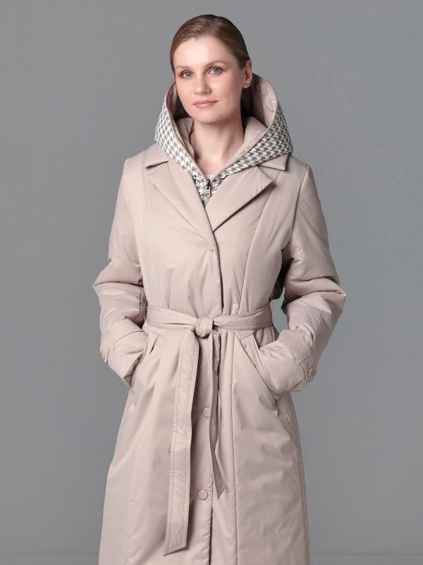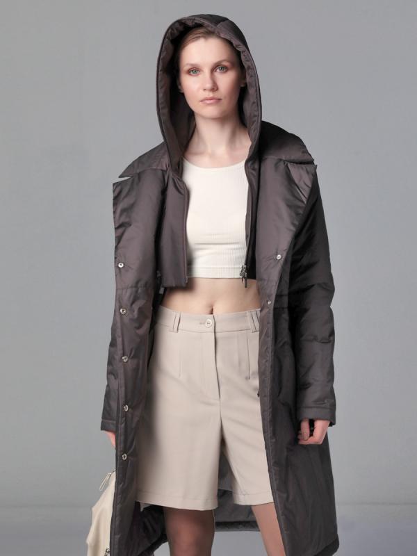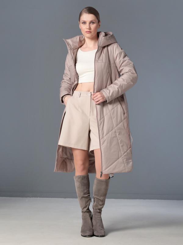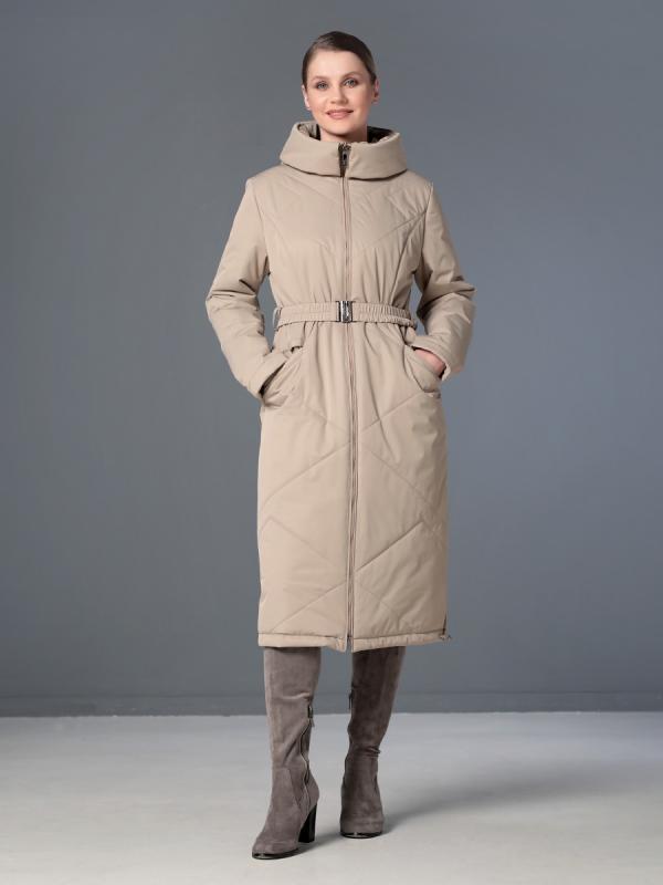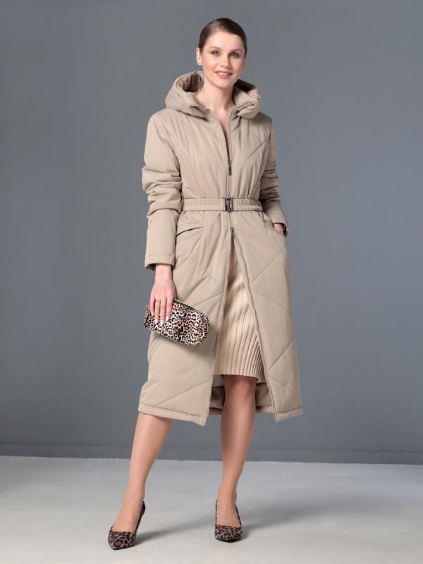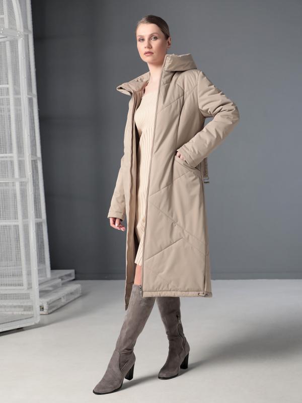 Демисезонное пальто прямого силуэта с застежкой на двухзамковую молнию, которая позволяет расстегнуть пальто как сверху так и снизу, регулируя тем самым ширину шага по необходимости. Воротник - уютная стойка, переходящая в капюшон. Две пары удобно расположенных в швах карманов застегиваются на кнопки. Низ втачного рукава оформлен трикотажной манжетой. Линию талии можно подчеркнуть съемным поясом. Модель этого стильного осеннего пальто подходит для девушек и женщин разной возрастной категории. Плащевая ткань, из которой выполнено изделие, имеет водоотталкивающую пропитку, выдерживающую небольшой дождь, снег и ветер. Хорошо зарекомендовавший себя утеплитель "