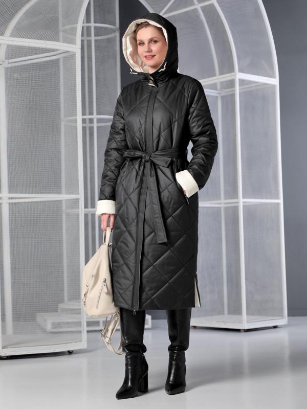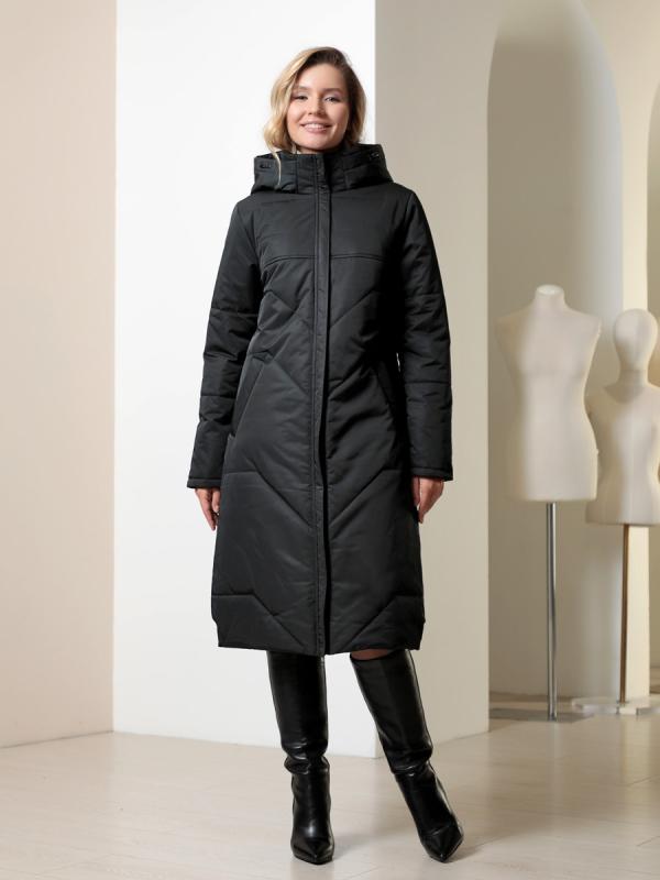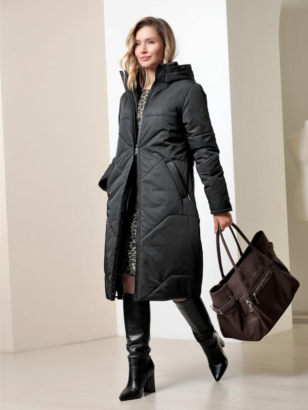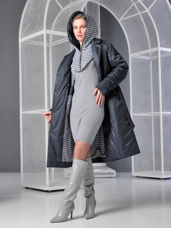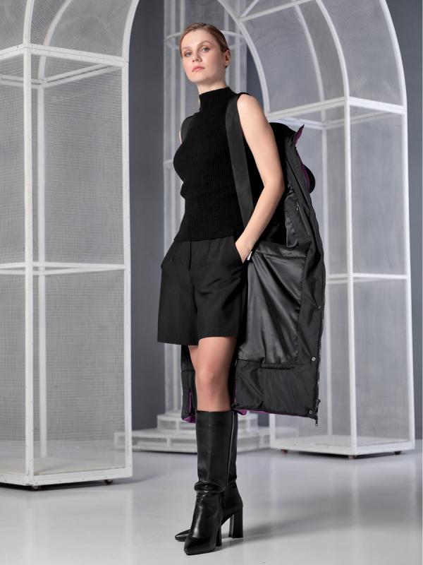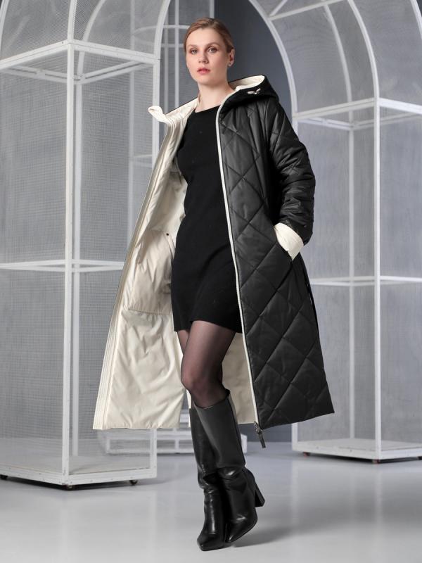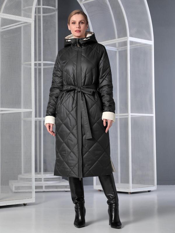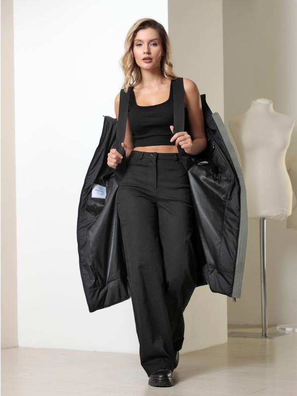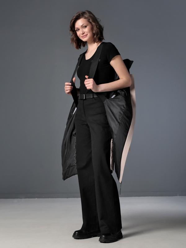 , плотностью 300 гм, защитит от холода. Подкладка в пуховике черного цвета. Силуэт пальто, рельефные линии и комбинация с вертикальной стежкой выгодно подчеркнет любую фигуру, а контраст