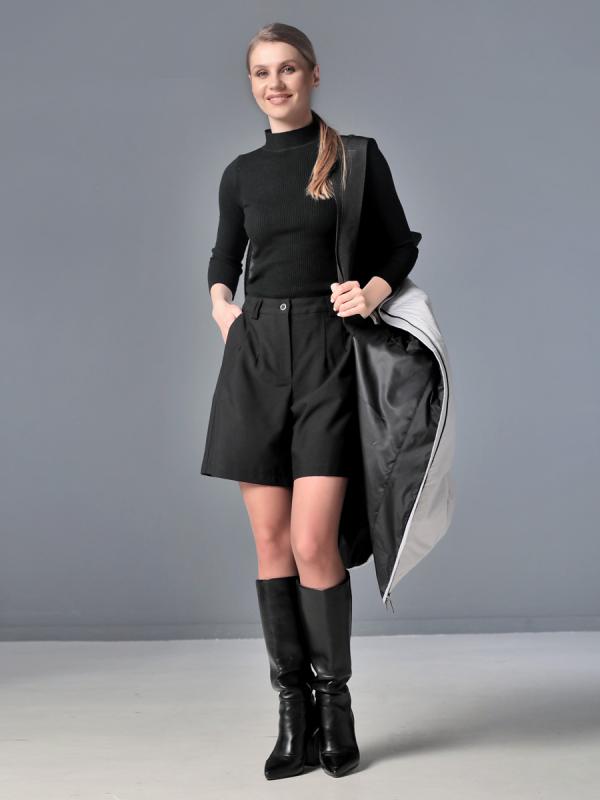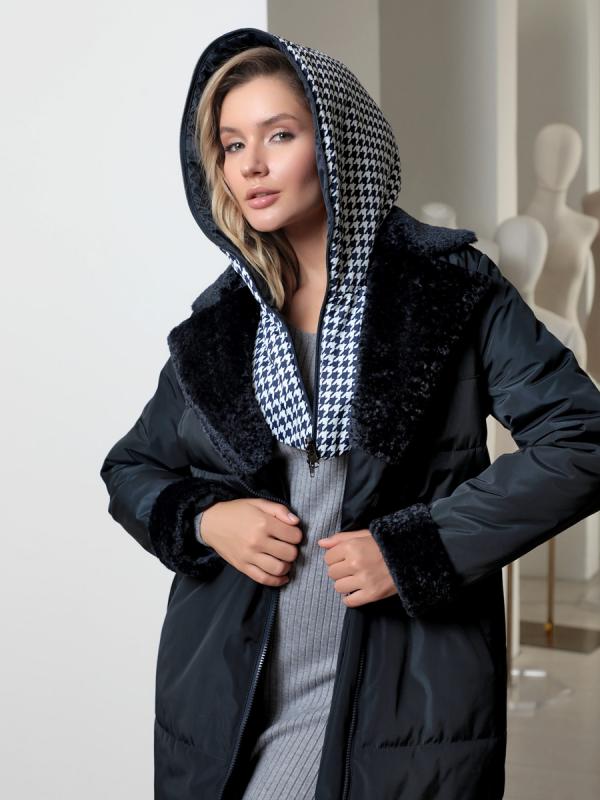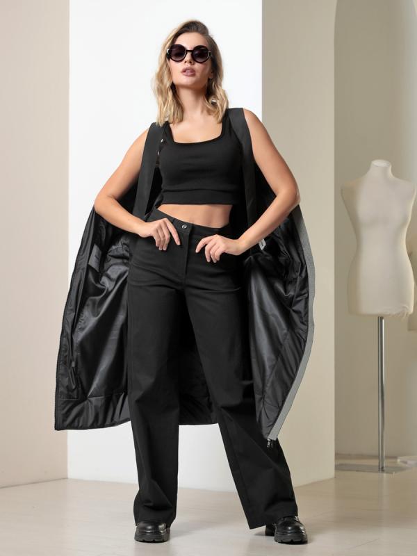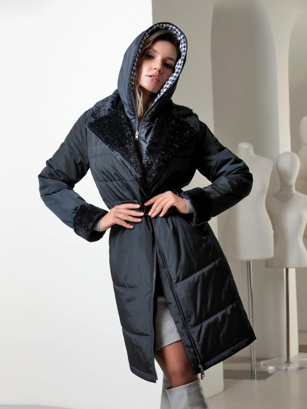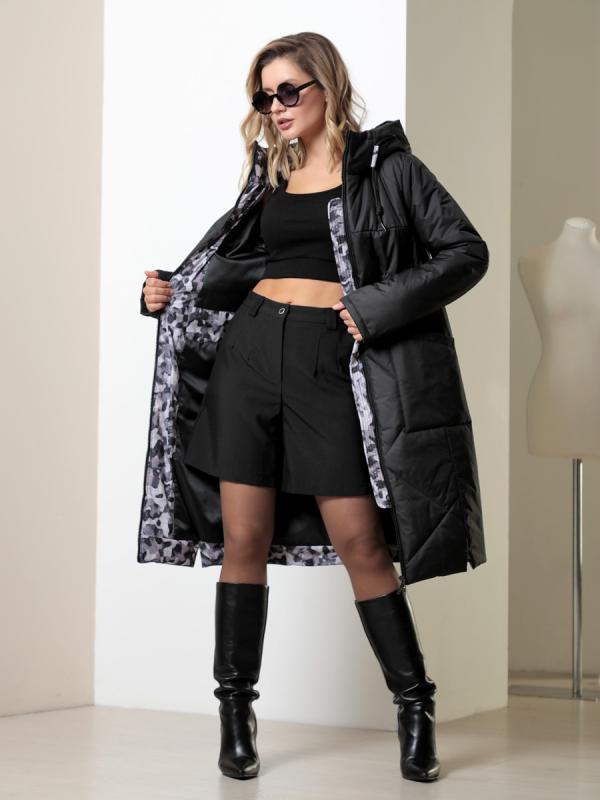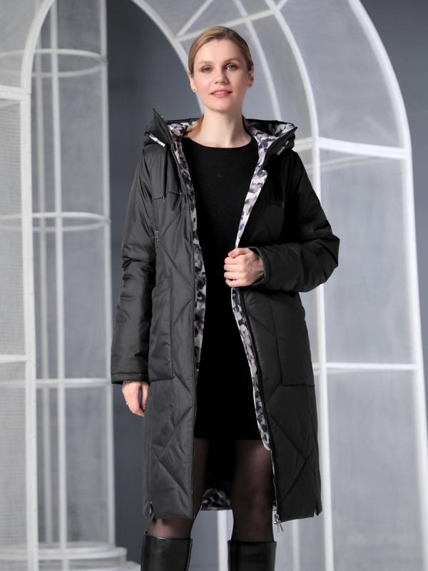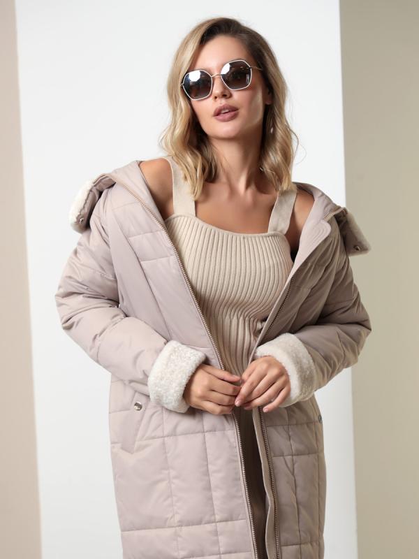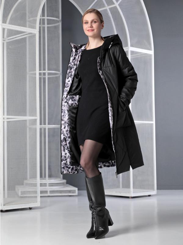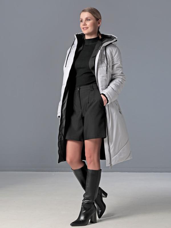, плотностью 300 гм, защитит от холода. Подкладка в пуховике черного цвета. Силуэт пальто, рельефные линии и комбинация с вертикальной стежкой выгодно подчеркнет любую фигуру, а контраст