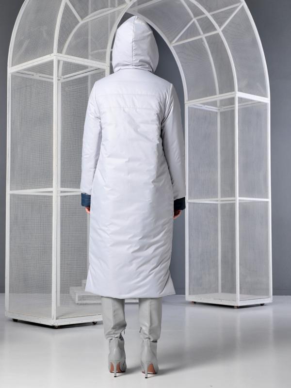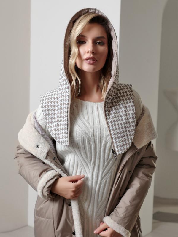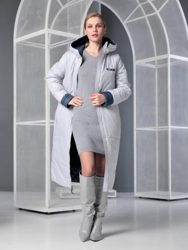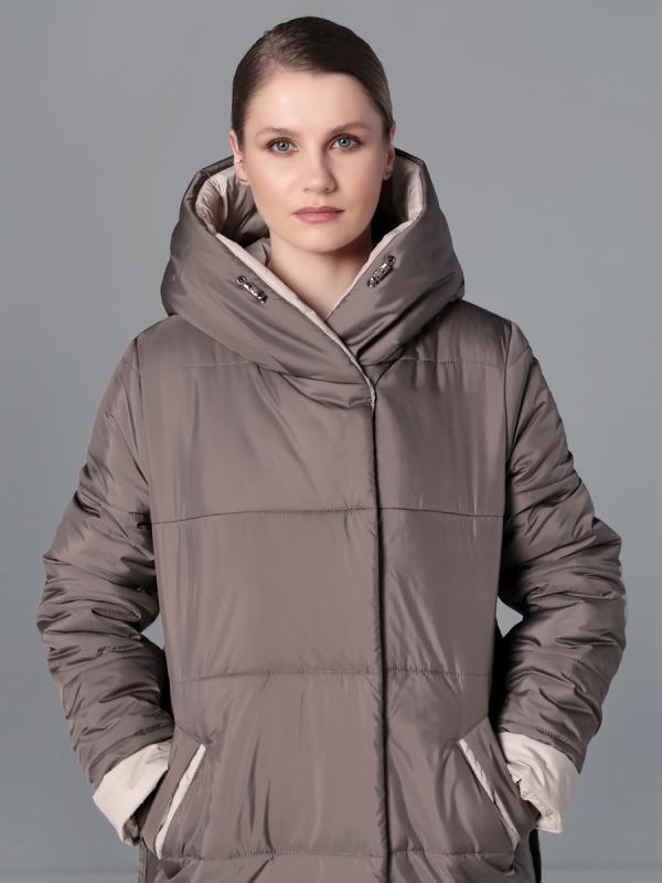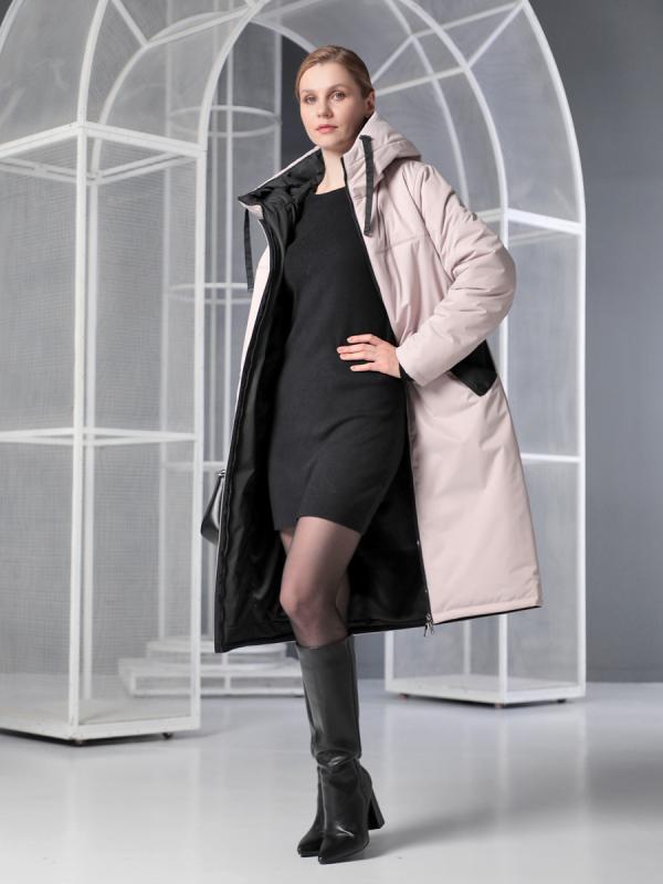 Стильное двухстороннее пальто прямого силуэта с застежкой на двухзамковую молнию, которая позволяет расстегнуть пальто как сверху, так и снизу, регулируя тем самым ширину шага по необходимости. Воротник - стойка, переходящая в регулируемый капюшон. В варианте "