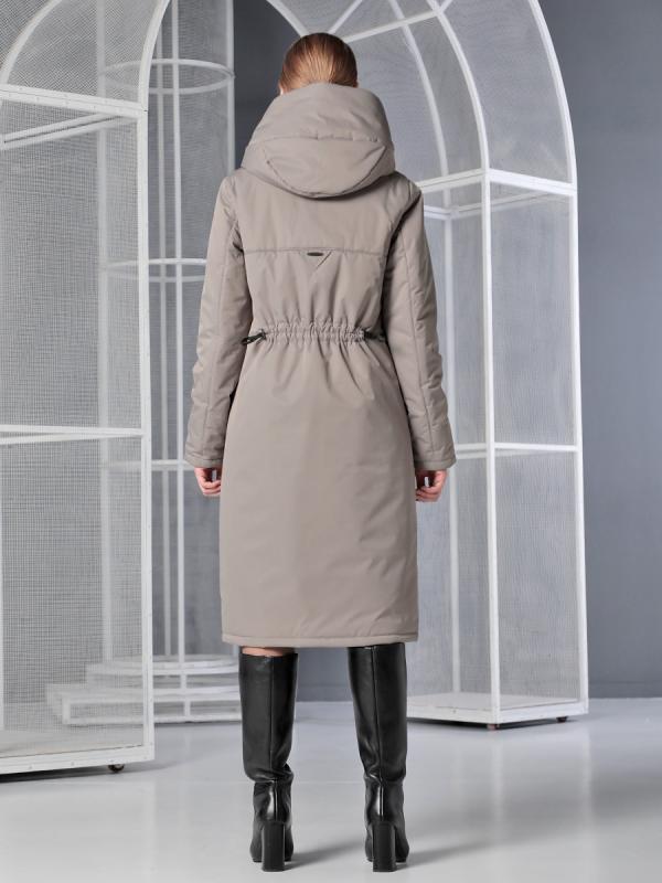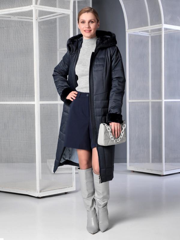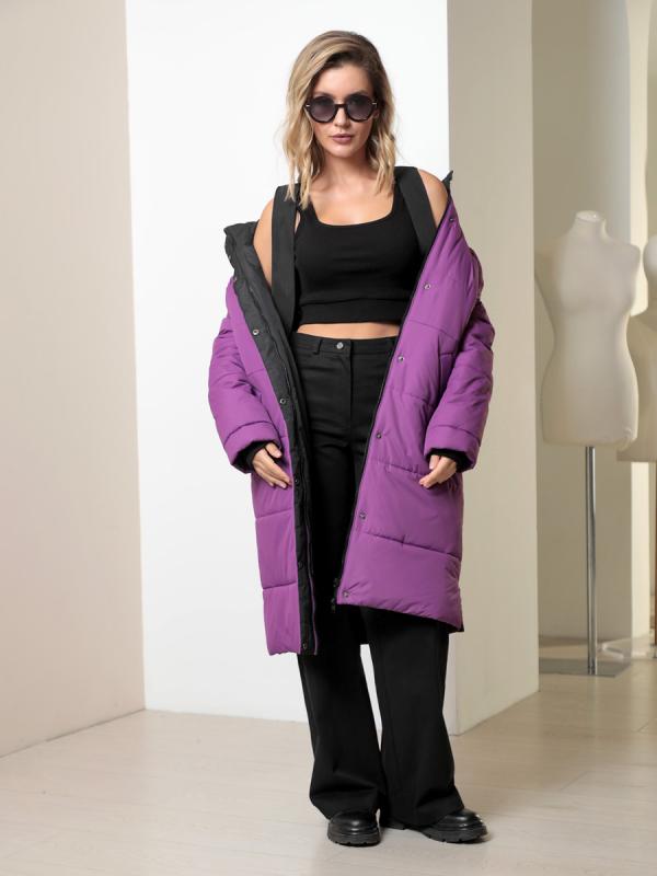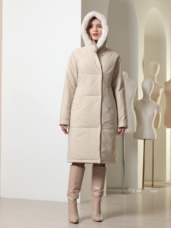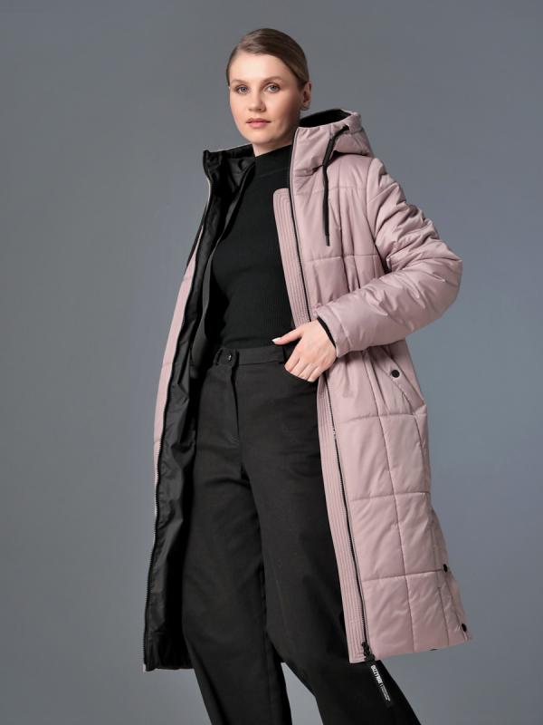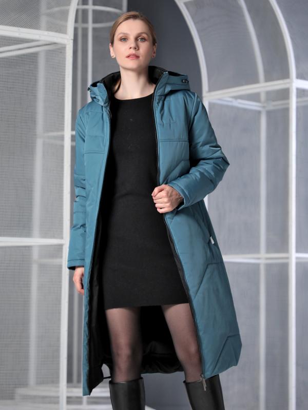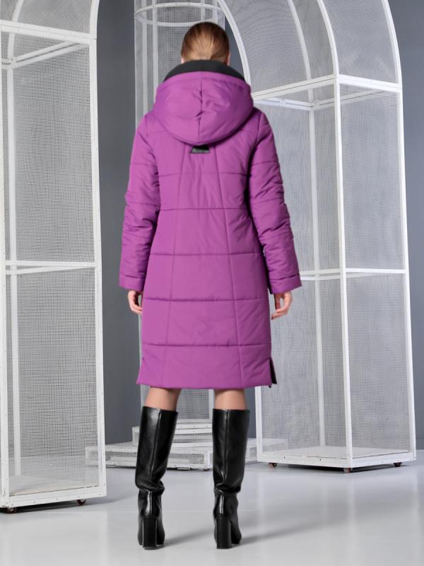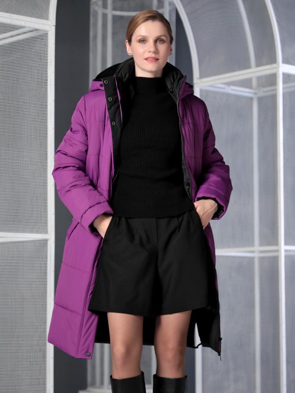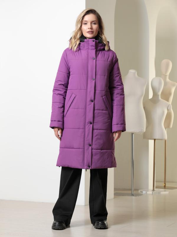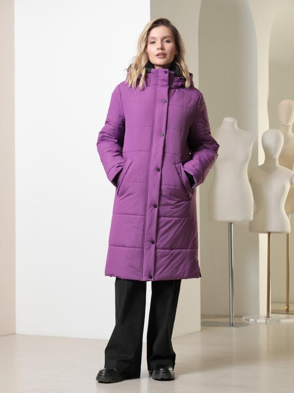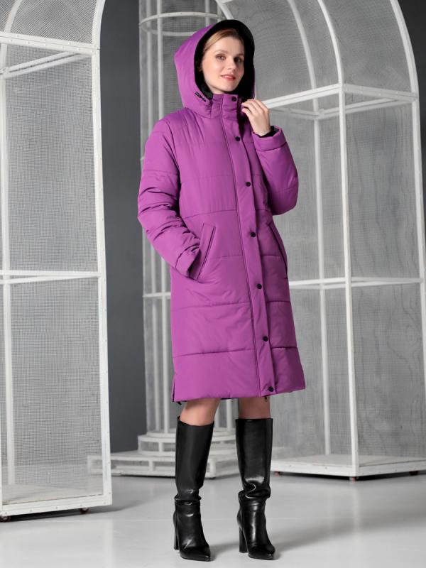Зимнее пальто прямого силуэта с застежкой на двухзамковую молнию, которая позволяет регулировать ширину шага при необходимости. Ветрозащитная планка фиксируется кнопками. Длину втачного рукава можно корректировать отворотом. Воротник - уютная стойка с внутренней отделкой из трикотажного меха. Опушка не отстегивается, но очень хорошо стирается и после высыхания сохраняет свой внешний вид. Регулируемый капюшон не отстегивается. Карманы удобно расположены в подрезах. Есть внутренний кармашек на молнии. Модель такого пальто средней длины подходит для девушек и женщин разных возрастных категорий. Плащевая ткань, из которой выполнено изделие, имеет водоотталкивающую пропитку, выдерживающую небольшой дождь, снег и ветер. Хорошо зарекомендовавший себя утеплитель "