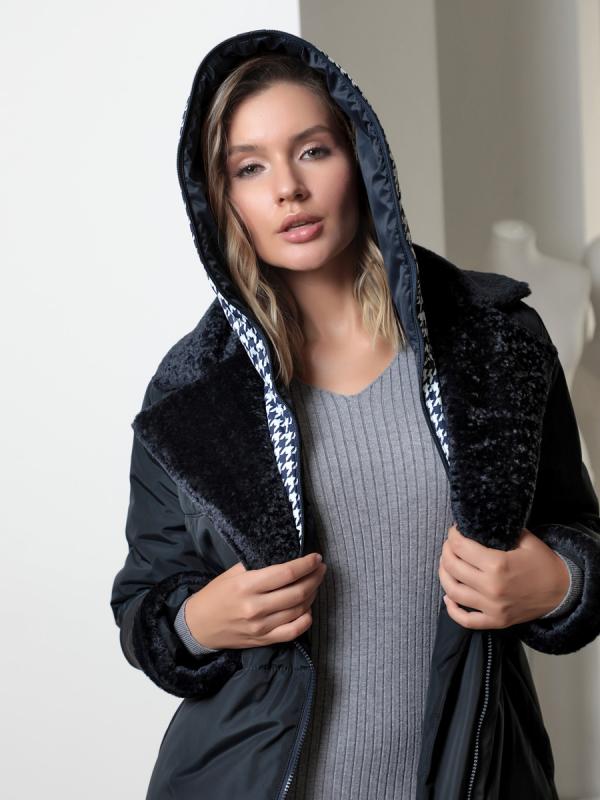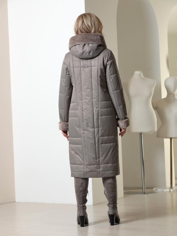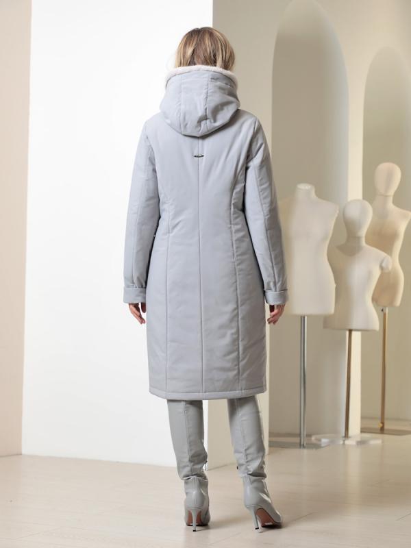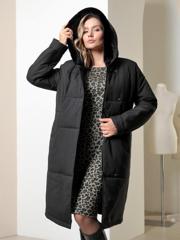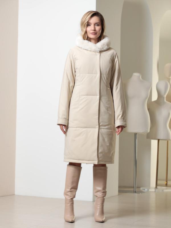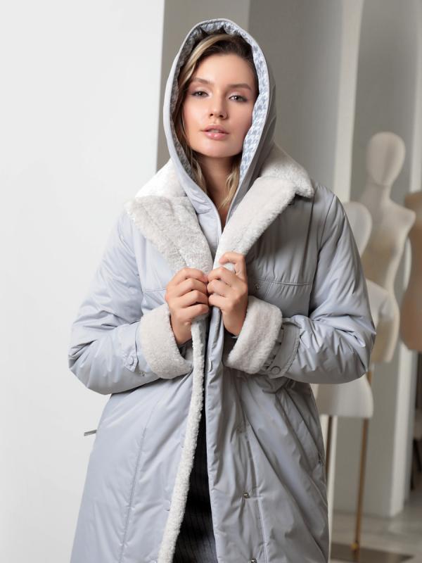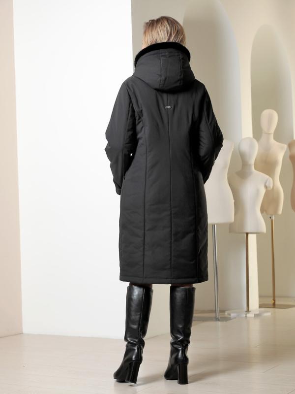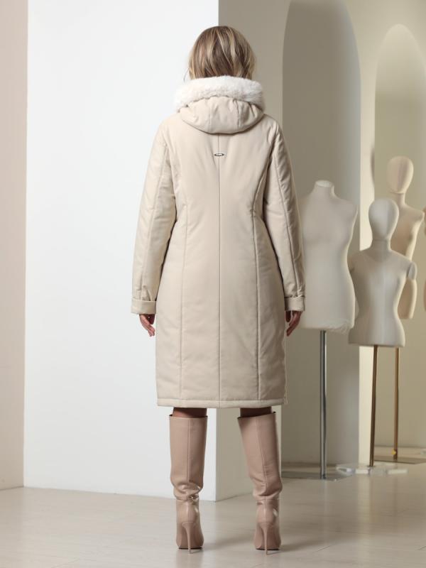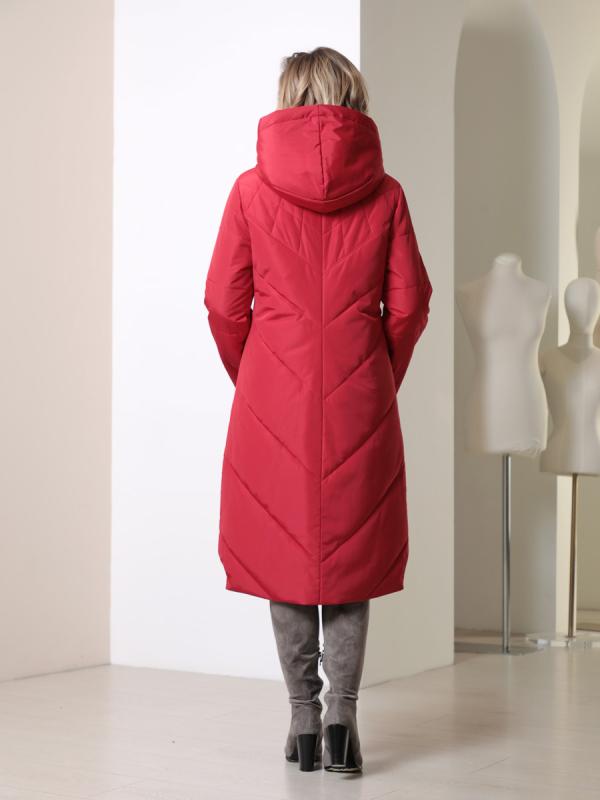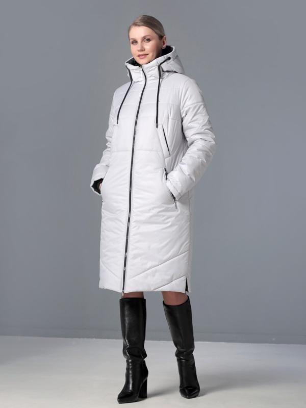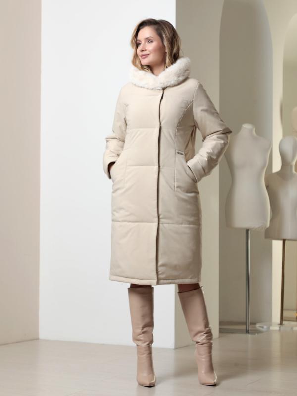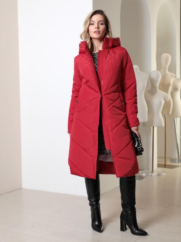 Зимнее пальто прямого силуэта с застежкой на двухзамковую молнию, которая позволяет регулировать ширину шага при необходимости. Ветрозащитная планка фиксируется кнопками. Длину втачного рукава можно корректировать отворотом. Воротник - уютная стойка с внутренней отделкой из трикотажного меха. Опушка не отстегивается, но очень хорошо стирается и после высыхания сохраняет свой внешний вид. Регулируемый капюшон не отстегивается. Карманы удобно расположены в подрезах. Есть внутренний кармашек на молнии. Модель такого пальто средней длины подходит для девушек и женщин разных возрастных категорий. Плащевая ткань, из которой выполнено изделие, имеет водоотталкивающую пропитку, выдерживающую небольшой дождь, снег и ветер. Хорошо зарекомендовавший себя утеплитель "