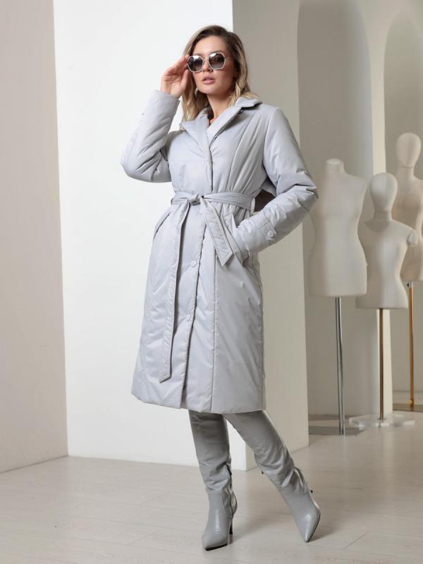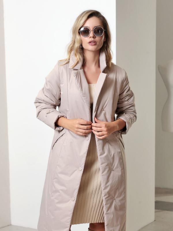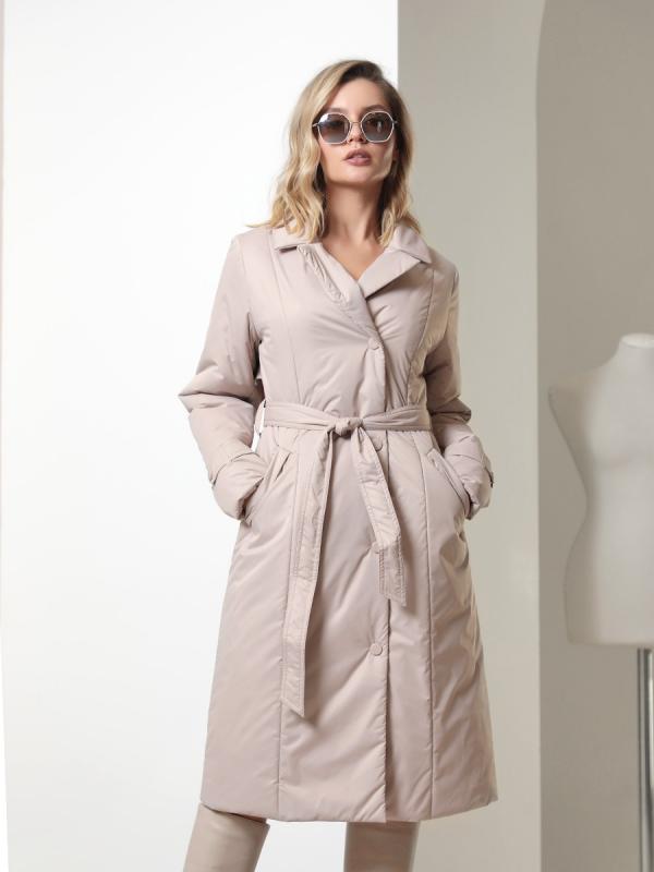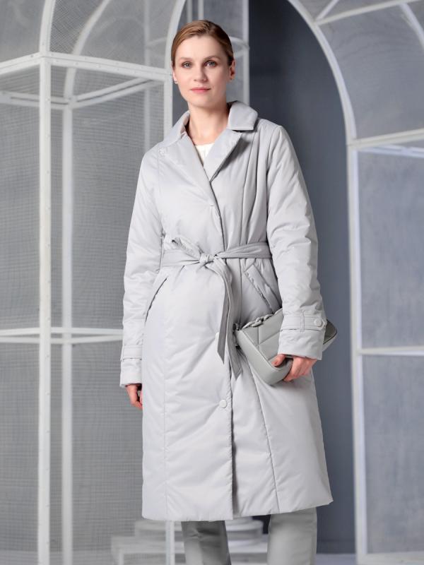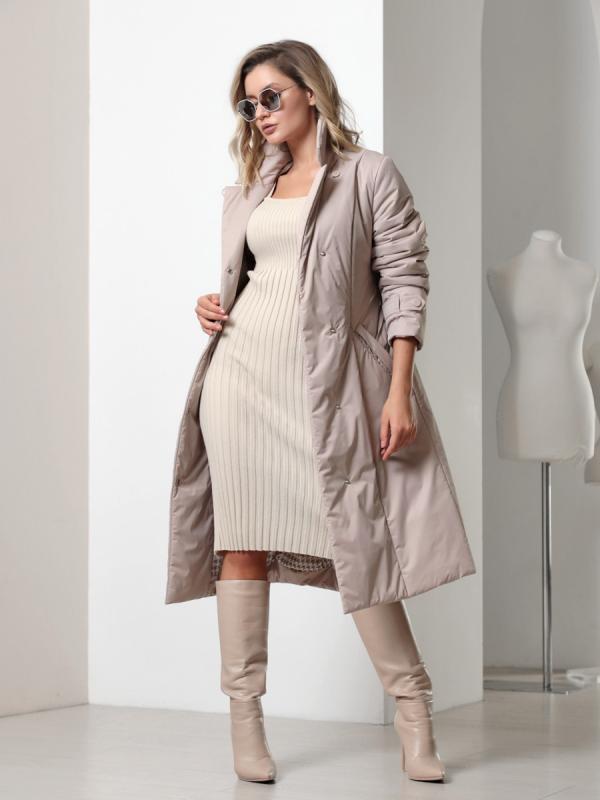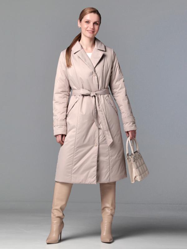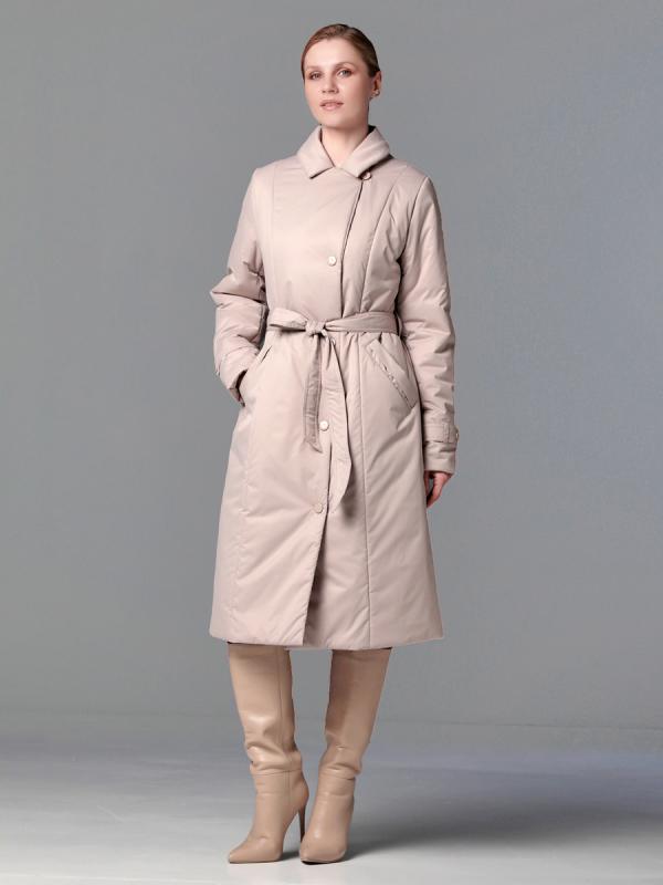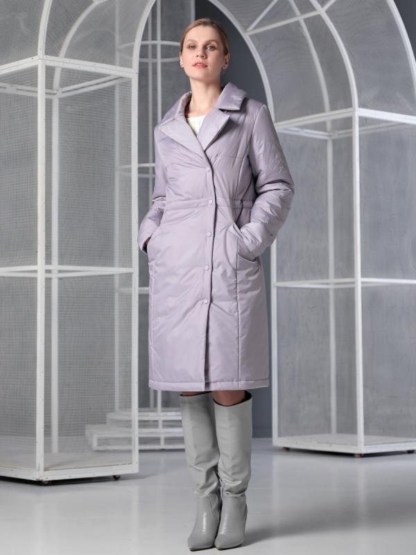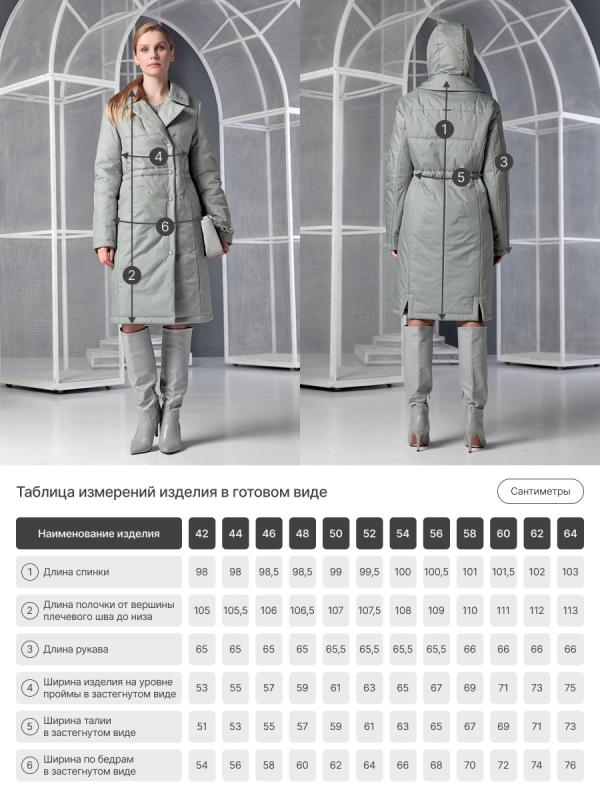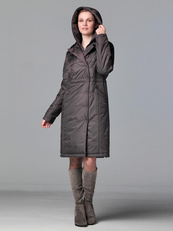стороны - карманы накладные. При желании линию талии можно подчеркнуть съемным поясом. Длина втачного рукава корректируется отворотом. Модель такого демисезонного пальто подходит для девушек и женщин разной возрастной категории, оно хорошо садится на любую фигуру. Плащевая ткань, из которой выполнено пальто, имеет водоотталкивающую пропитку, выдерживающую небольшой дождь, снег и ветер. Хорошо зарекомендовавший себя утеплитель "