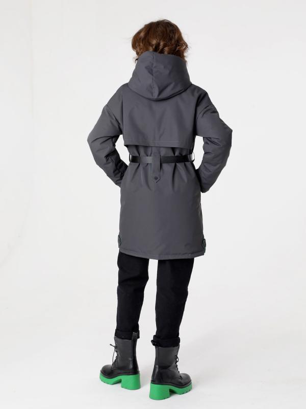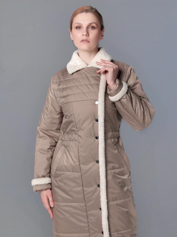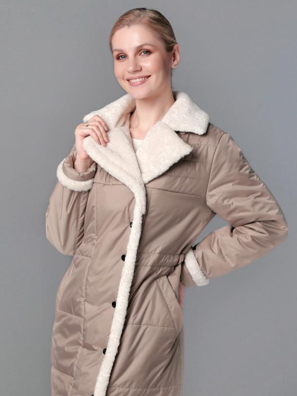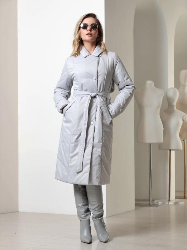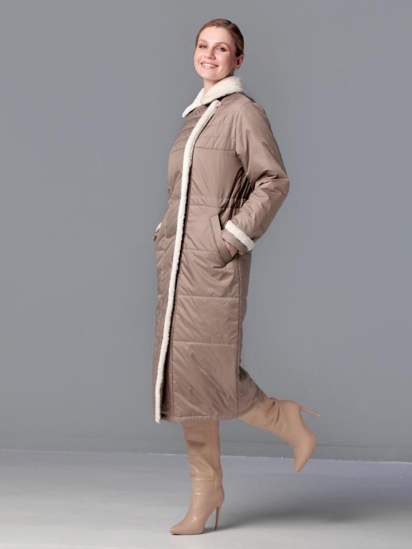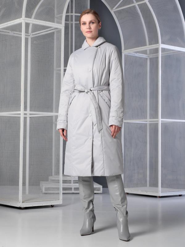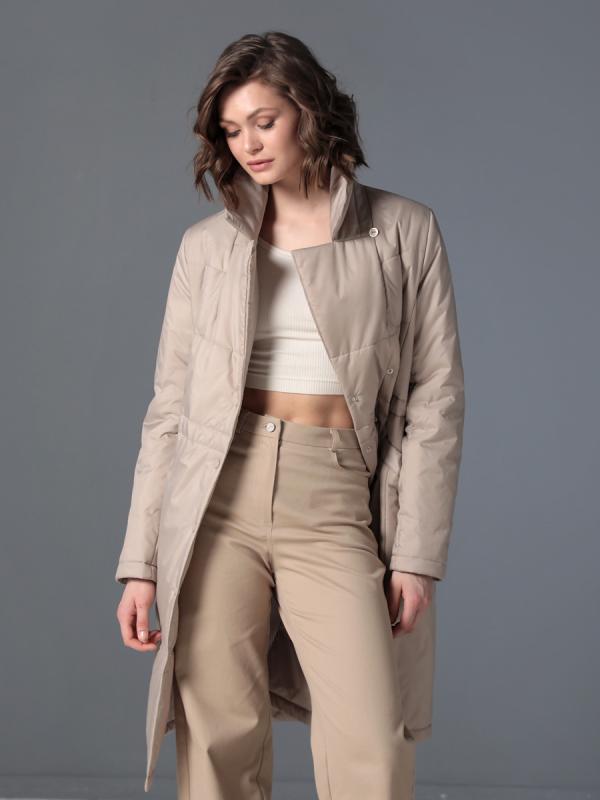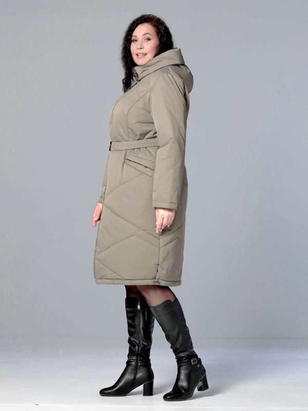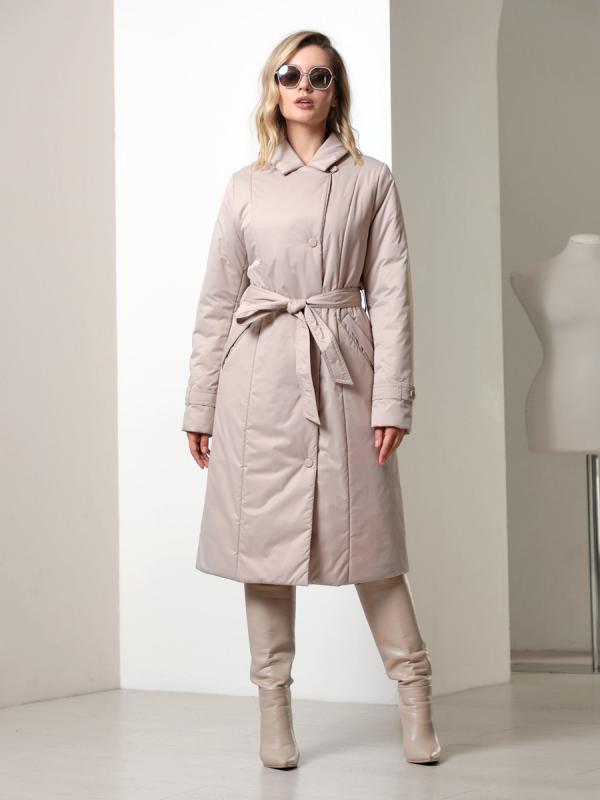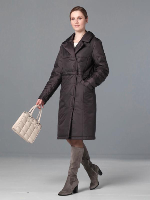 стороны - карманы накладные. При желании линию талии можно подчеркнуть съемным поясом. Длина втачного рукава корректируется отворотом. Модель такого демисезонного пальто подходит для девушек и женщин разной возрастной категории, оно хорошо садится на любую фигуру. Плащевая ткань, из которой выполнено пальто, имеет водоотталкивающую пропитку, выдерживающую небольшой дождь, снег и ветер. Хорошо зарекомендовавший себя утеплитель "