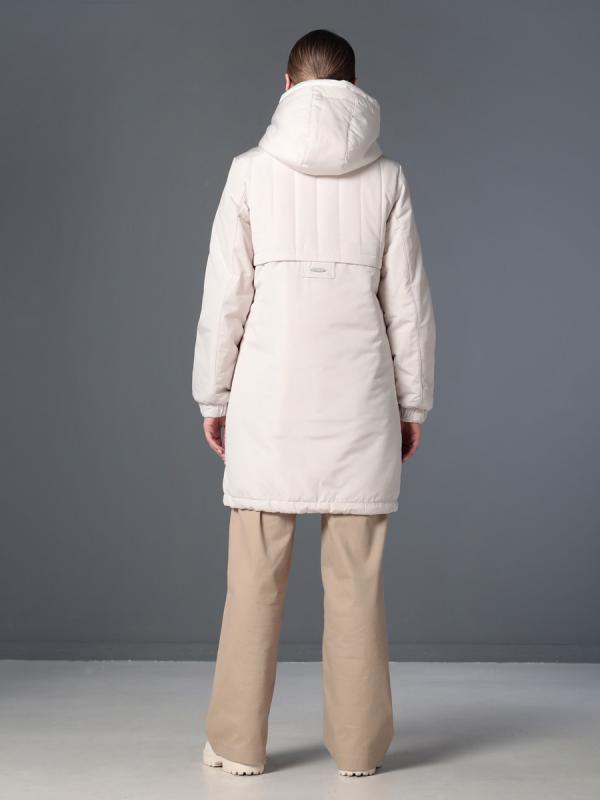 силуэт. Длина втачного рукава регулируется отворотом. Воротник - уютная стойка, переходящая в капюшон. Удобно расположенные карманы застегиваются на молнию. Есть внутренний кармашек, тоже на молнии. Плащевая ткань, из которой выполнено изделие, имеет водоотталкивающую пропитку, выдерживающую небольшой дождь, снег и ветер. Хорошо зарекомендовавший себя утеплитель "