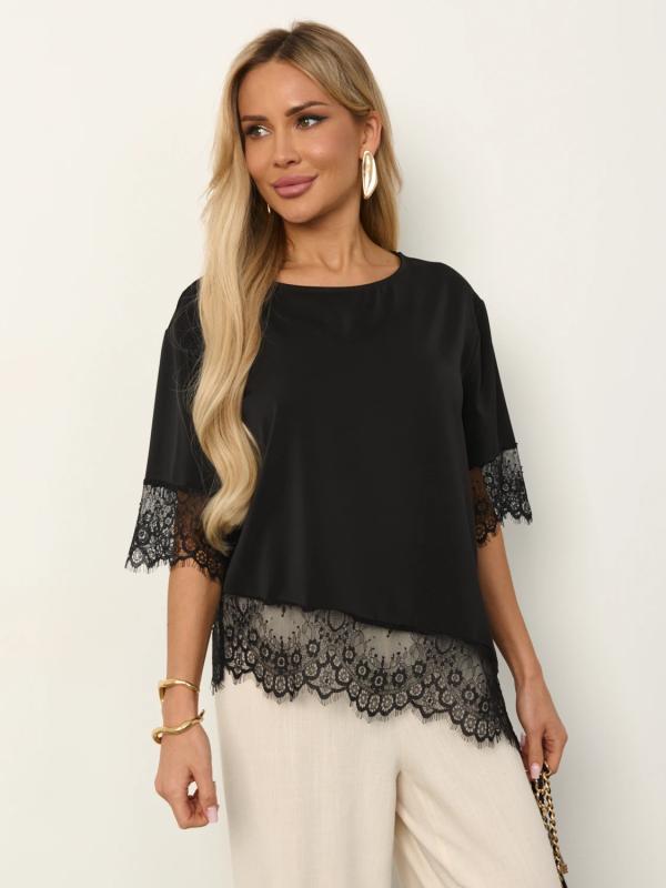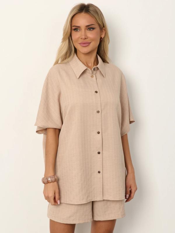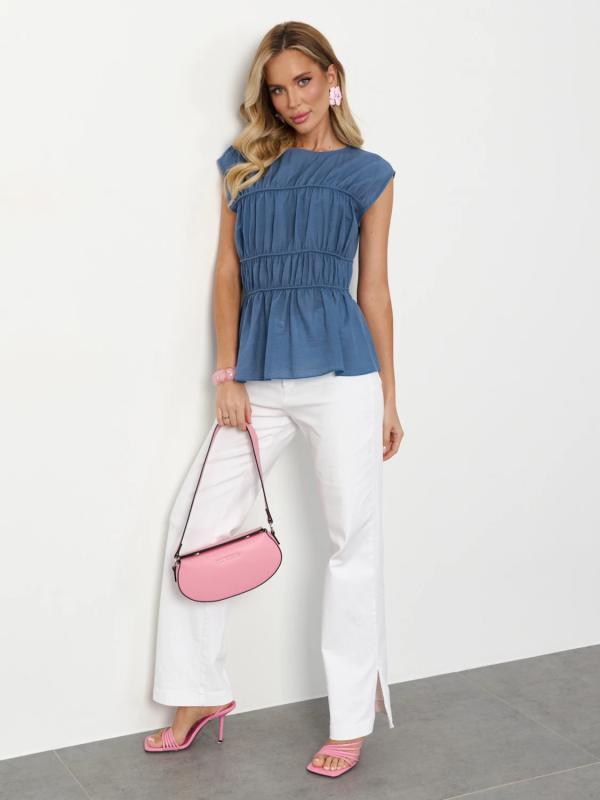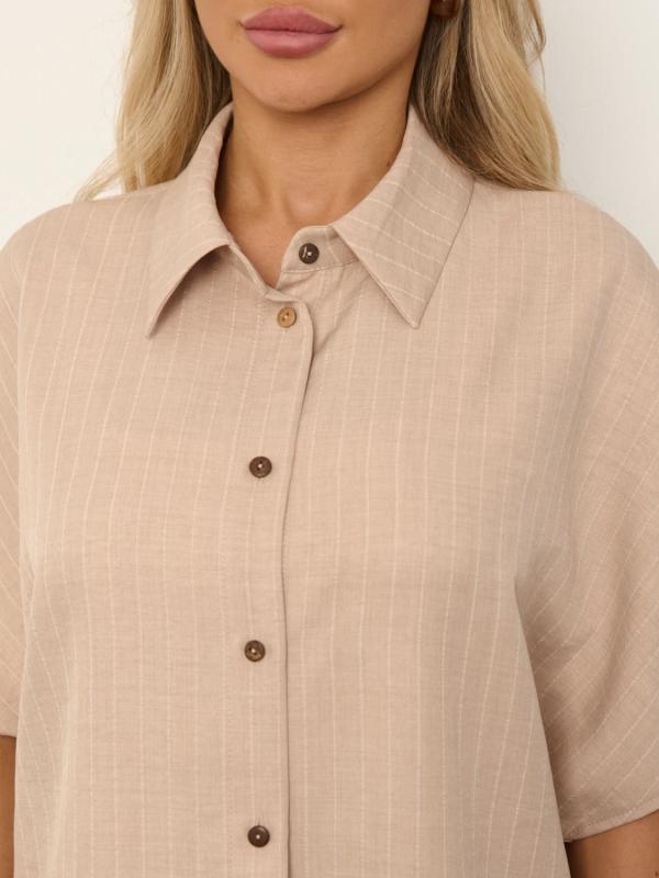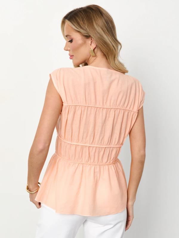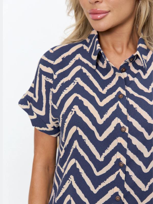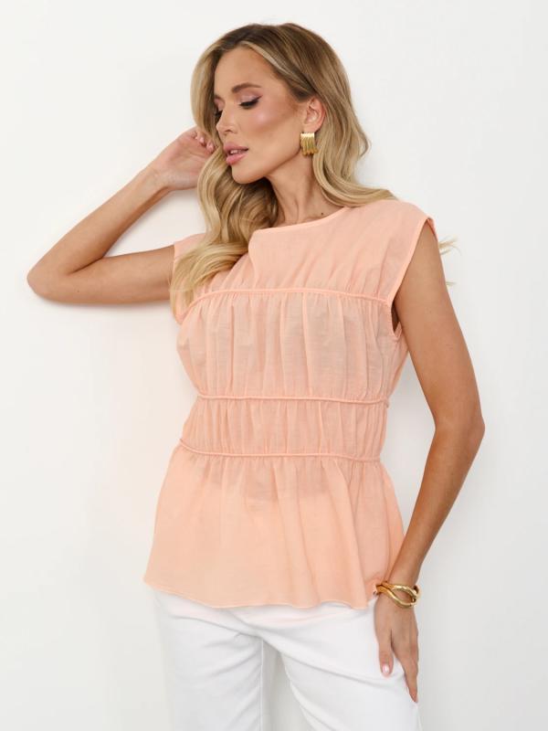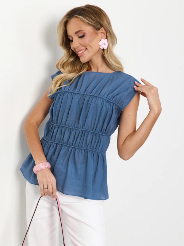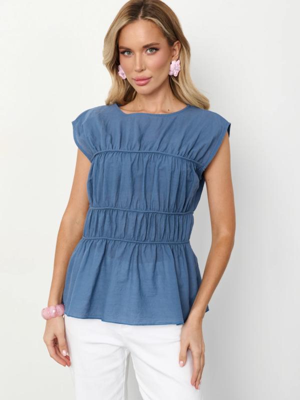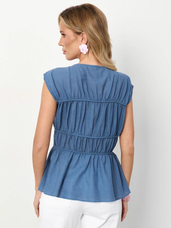 Блуза из хлопка с декоративными горизонтальными отстрочками по всему изделию.