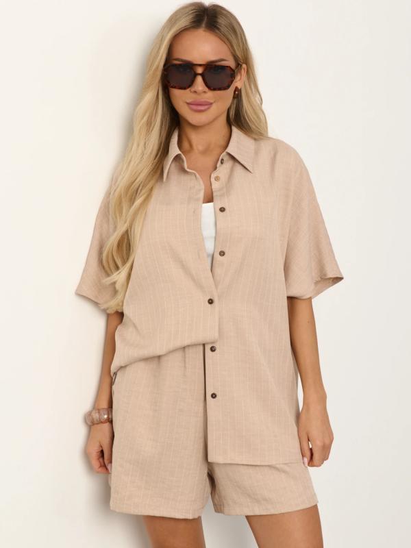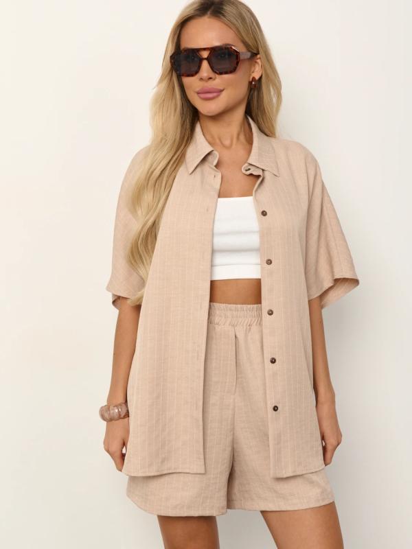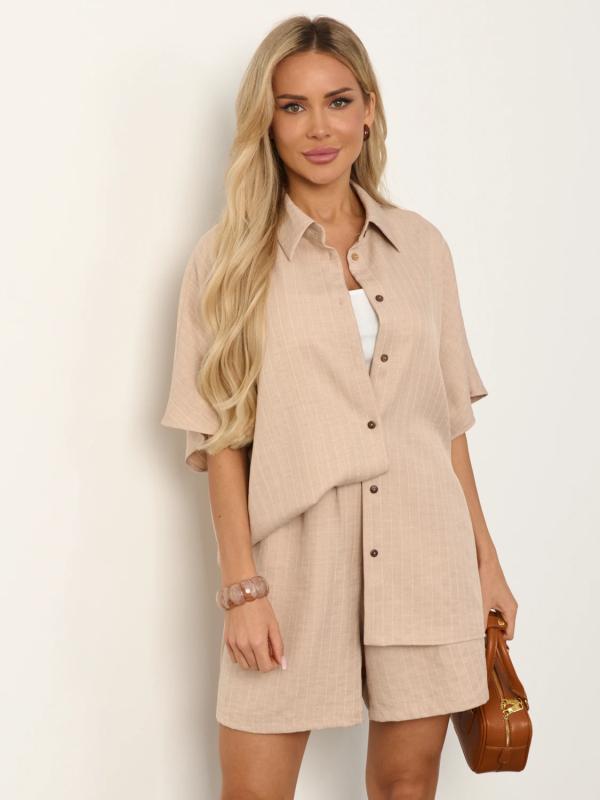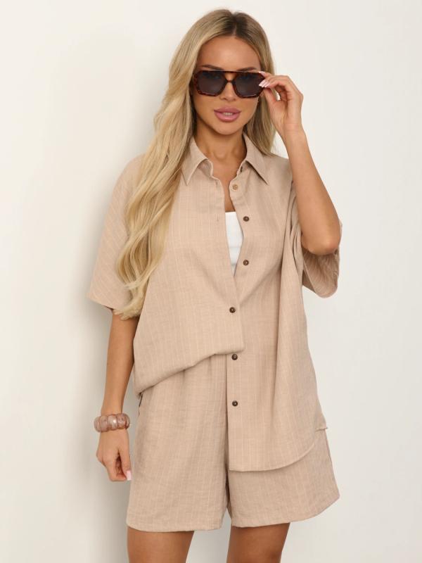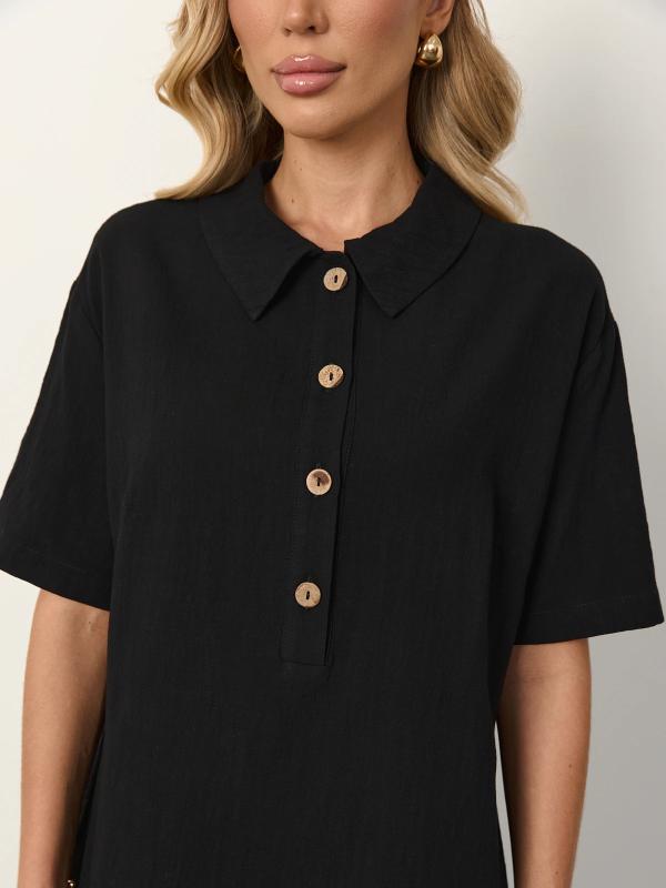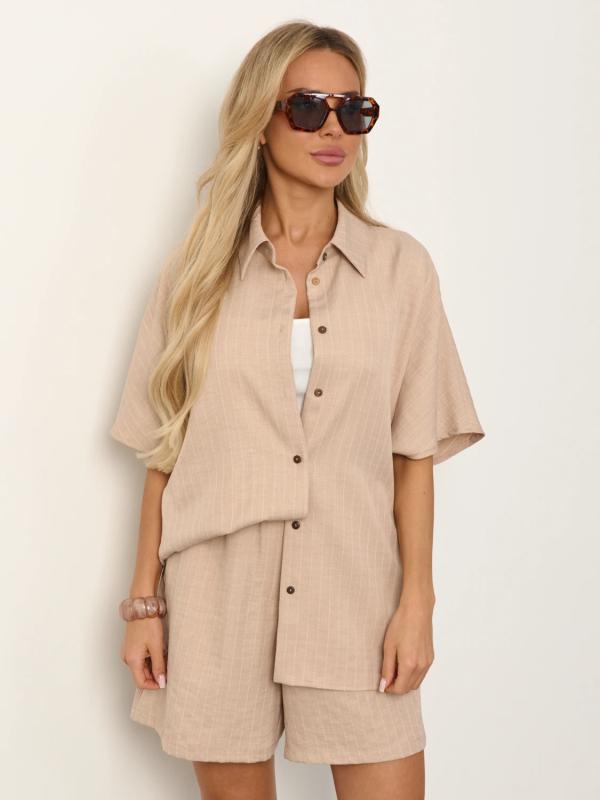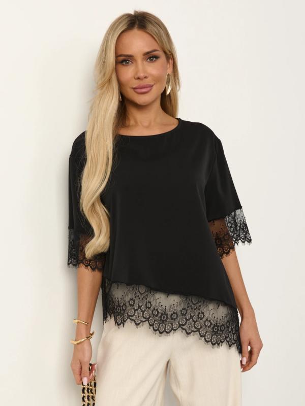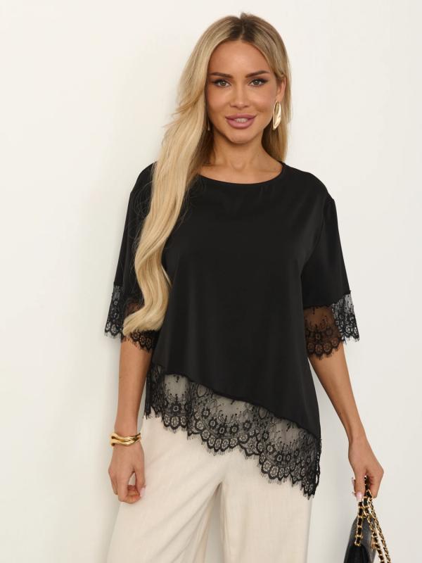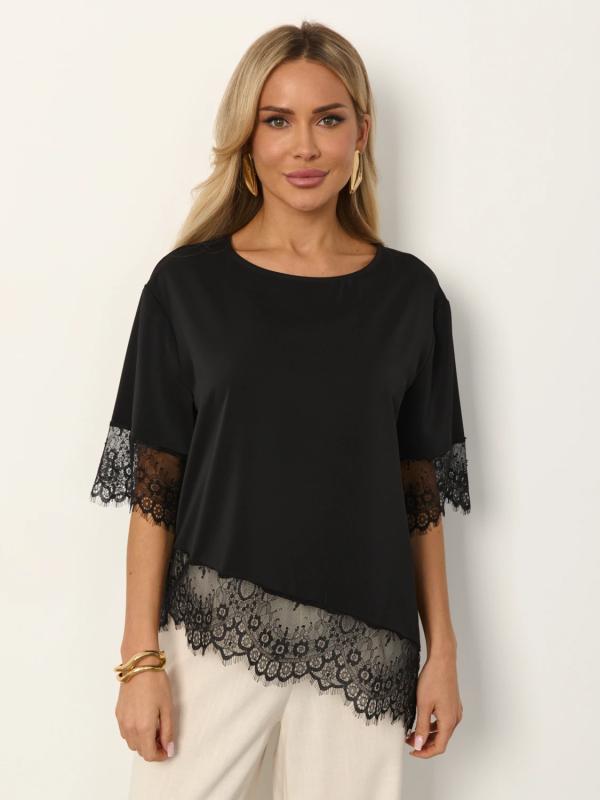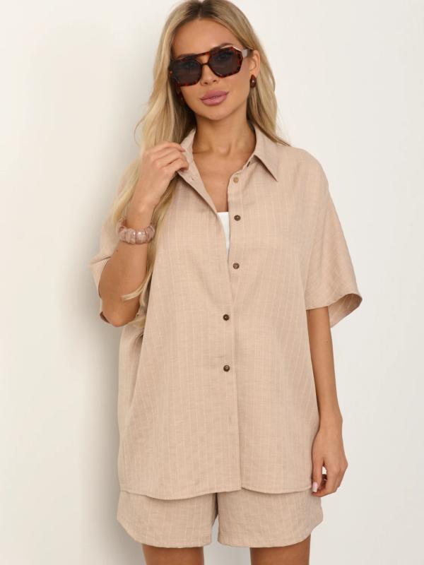 Блуза из хлопка с декоративными горизонтальными отстрочками по всему изделию.