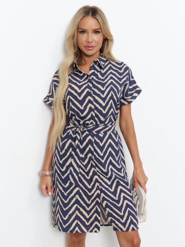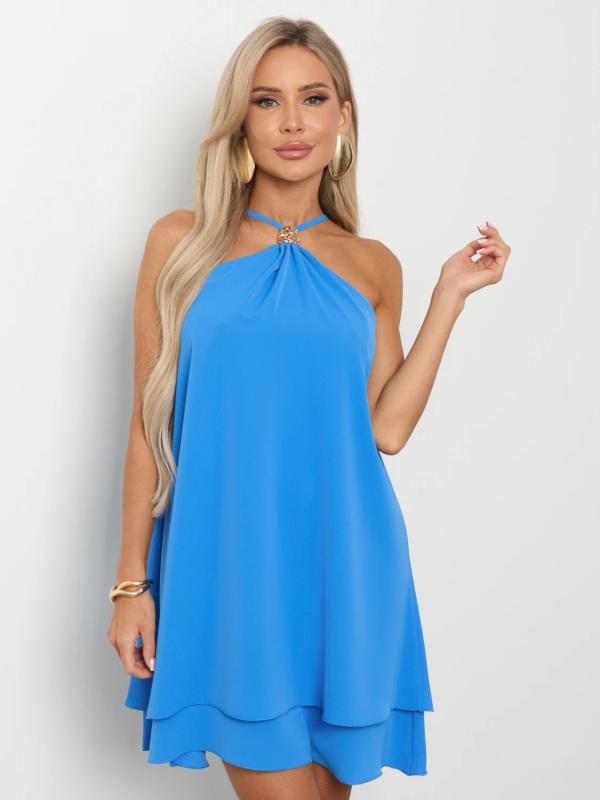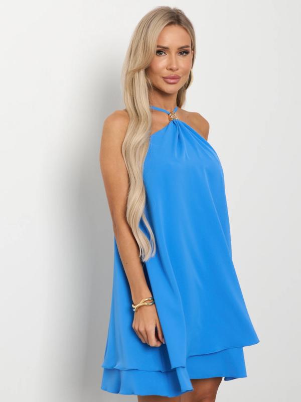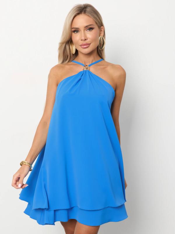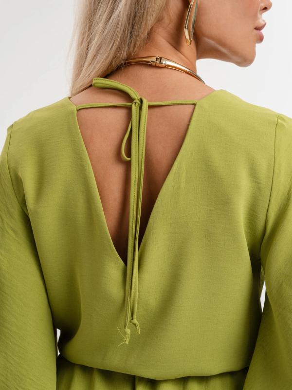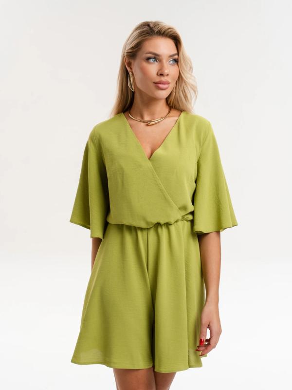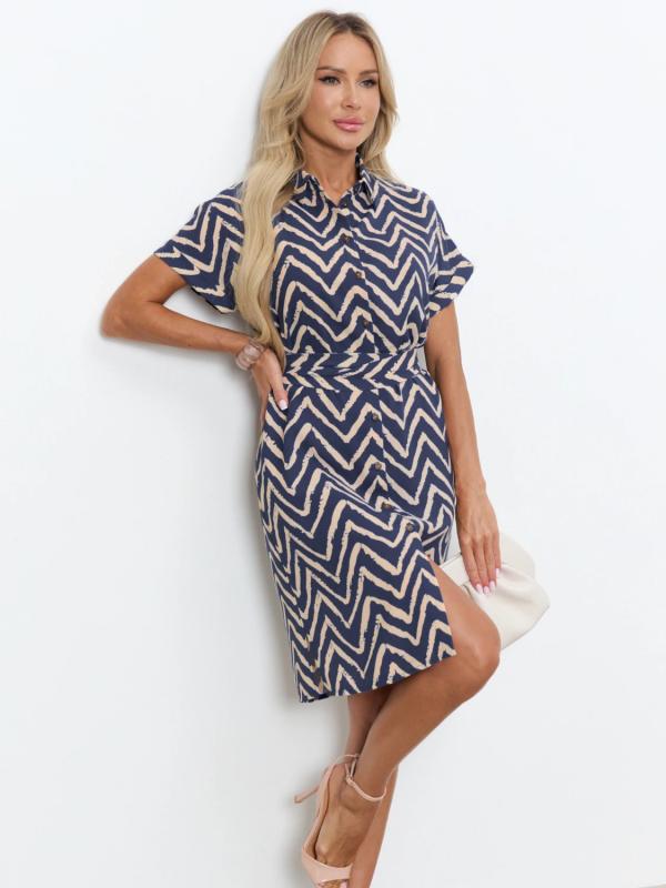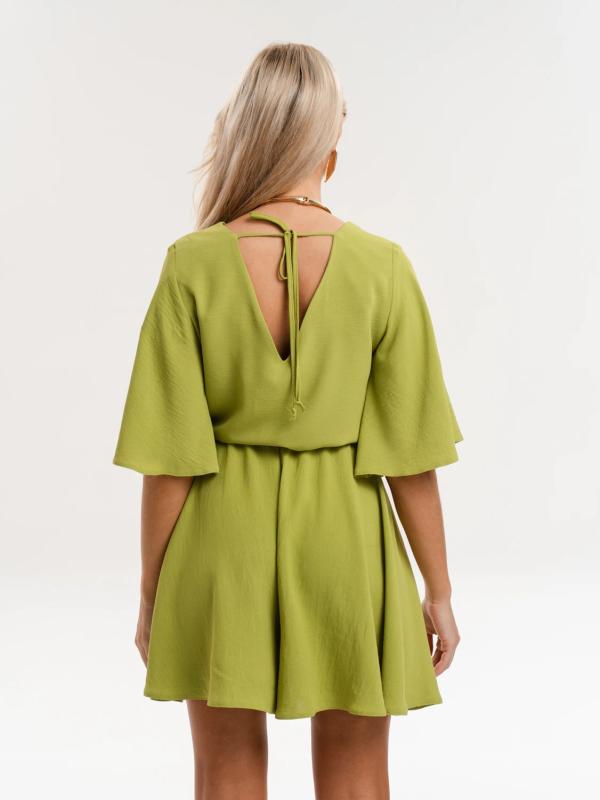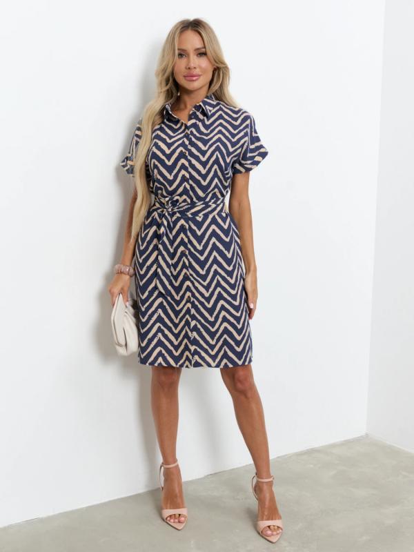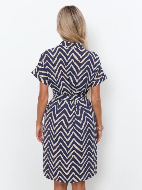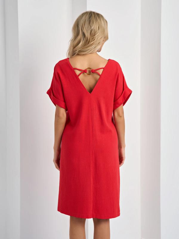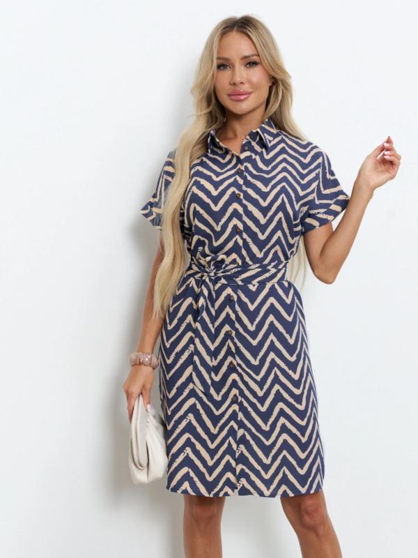 Платье декорировано поясом из искусственной кожи с пряжкой-полукольцом.