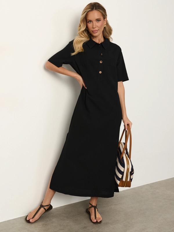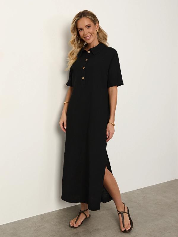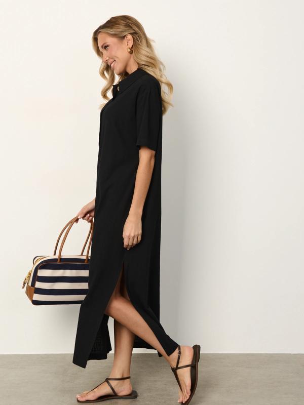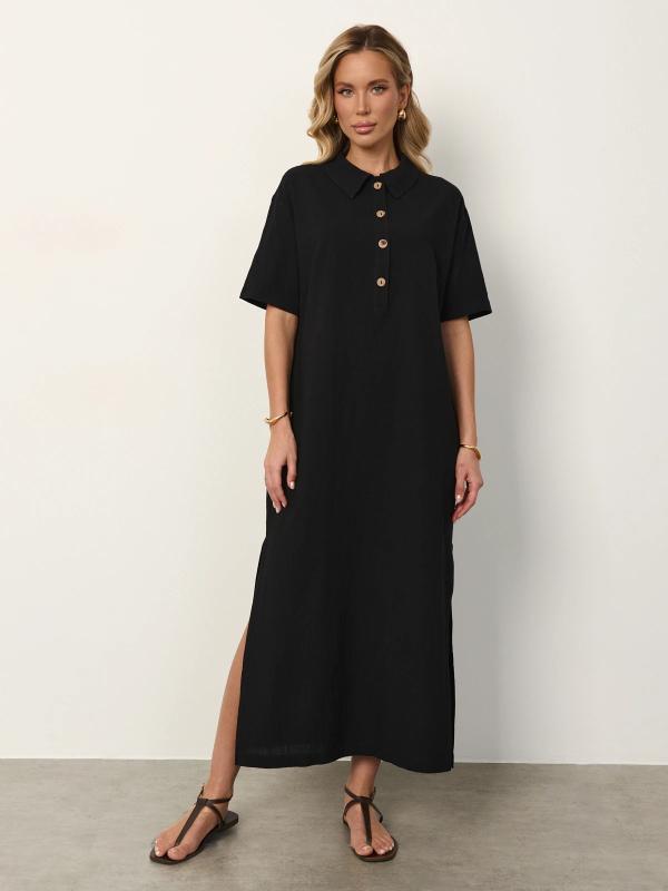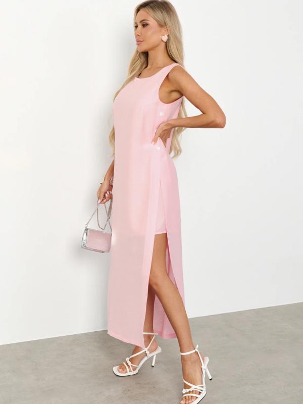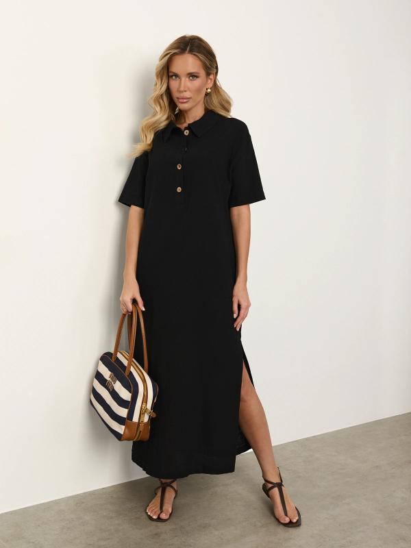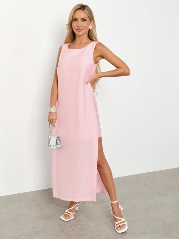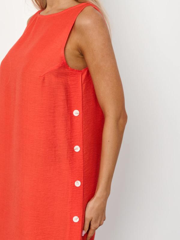 По бокам высокие разрезы, которые декорированы пуговицами.
