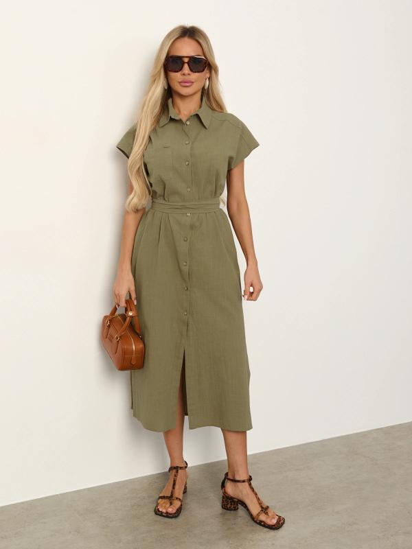 Платье дополнено поясом в цвет, пояс идет в комплекте.