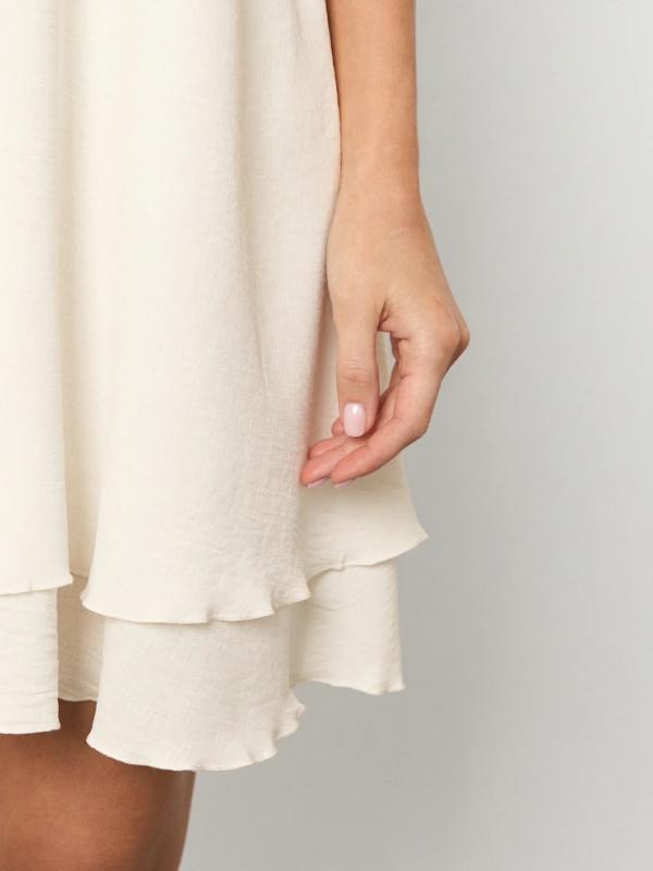 Верх изделия вполнен из костюмной ткани, юбка из жатого шифона с подкладом.