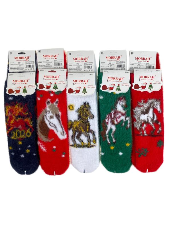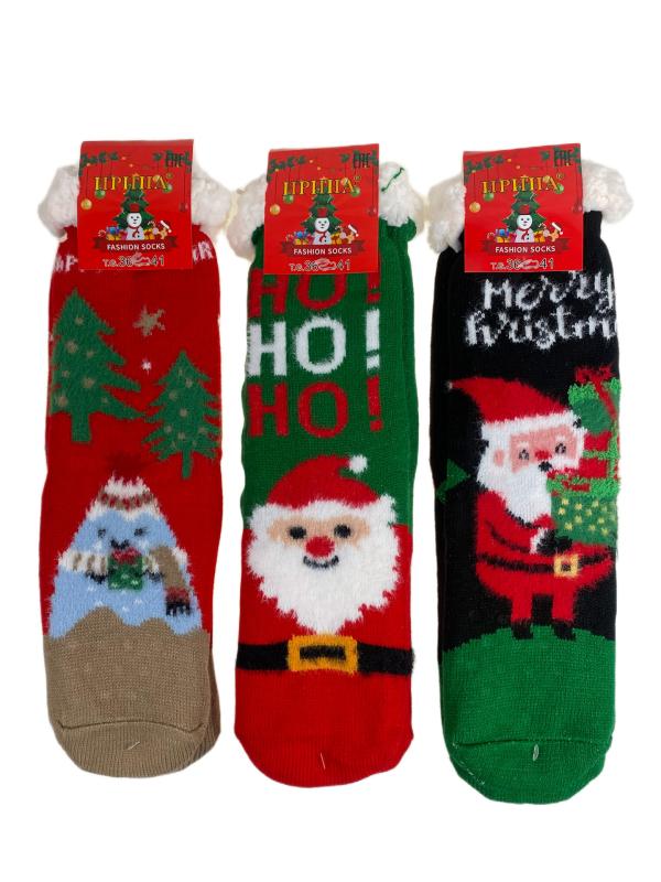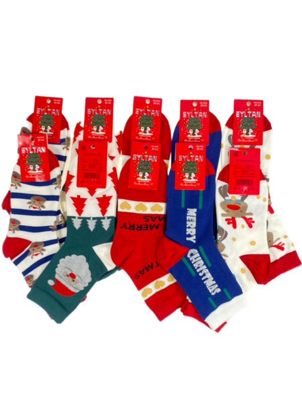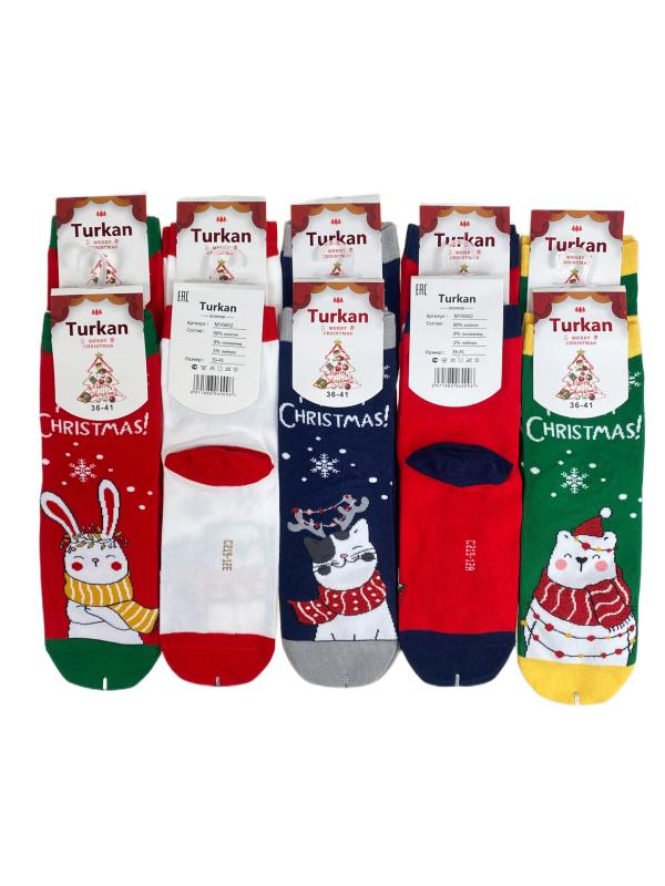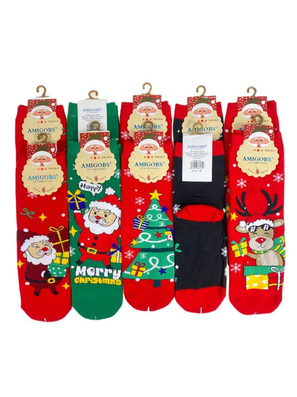 Женские хлопковые носки с новогодним принтом. В упаковке 10 пар. Размер носков: 36-41.-p>
