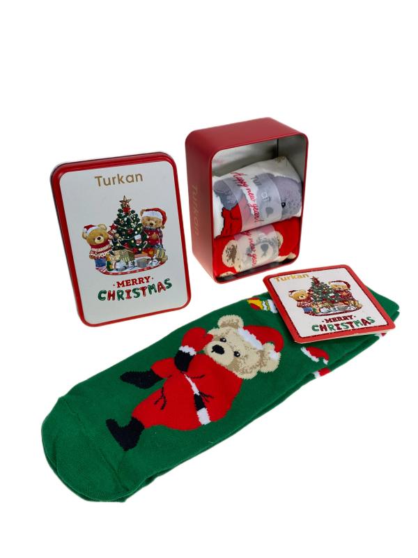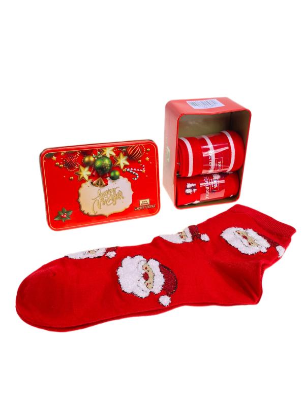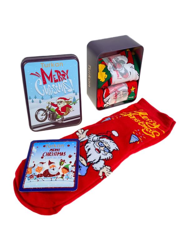 Подарочный набор женских носков. В коробке 3 пары, принт Дед мороз. В наборе поздравительная открытка. Размер носков: 36-41.-p>