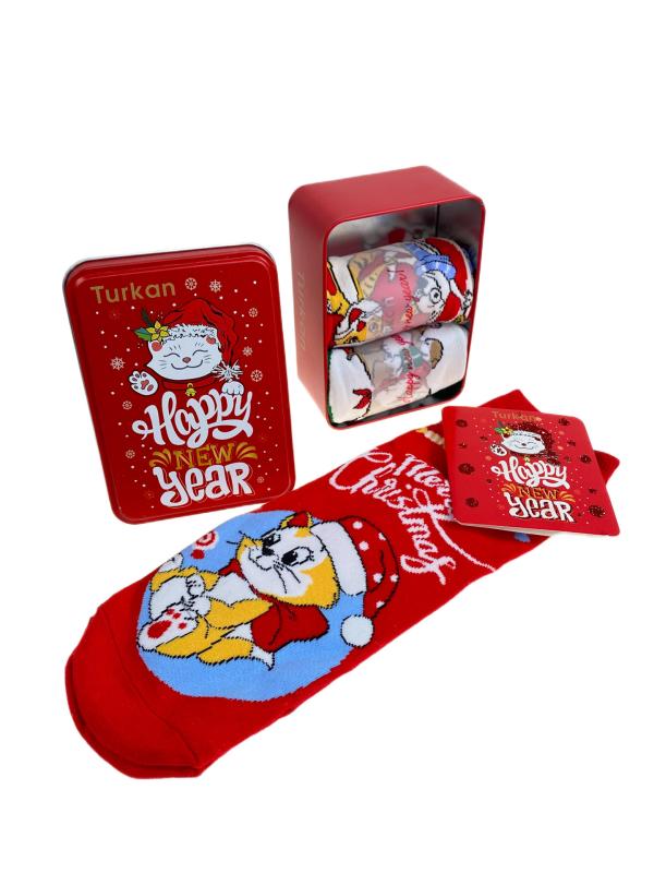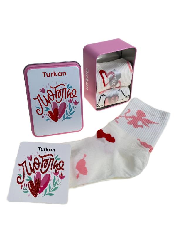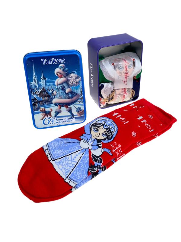 Подарочный набор женских носков. В коробке 3 пары, принт "