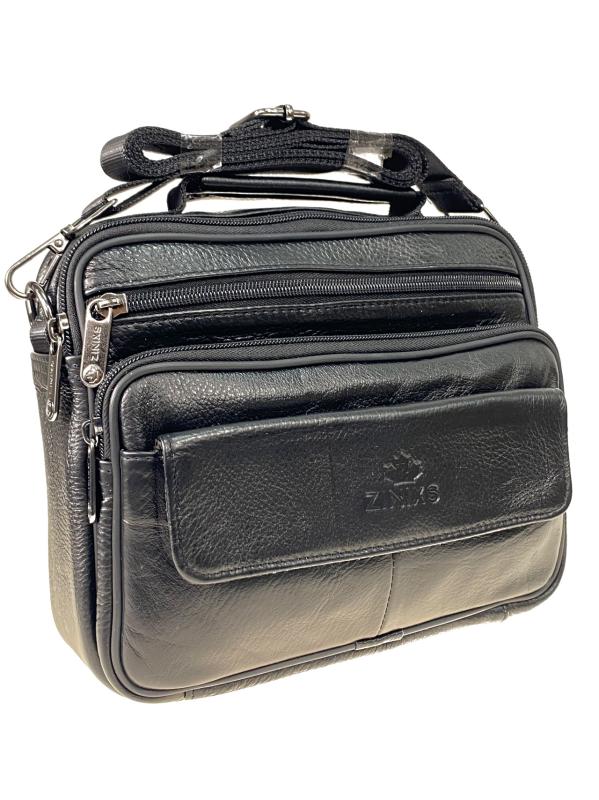 Функциональная мужская сумка из натуральной кожи . Подойдёт на каждый день. Текстильный ремень регулируется по длине. Сумка имеет одно отделение закрывается на молнию. На фронтальной стенке накладной карман на молнии и два прорезных кармана на молнии. На задней стенке карман на молнии. Длина: 17 см
