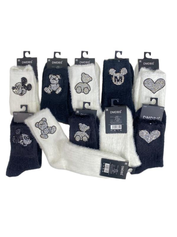 Теплые и мягкие женские носки из шерсти норки, украшены стразами. В упаковке 10 пар. Размер носков: 36-41.-p>