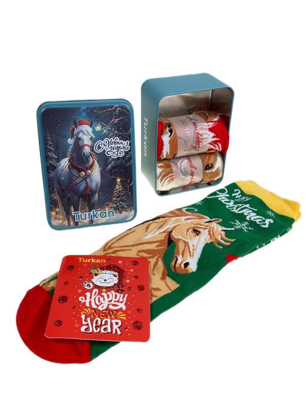 Подарочный набор женских носков. В коробке 3 пары, принт лошадь. Размер носков: 36-41.-p>