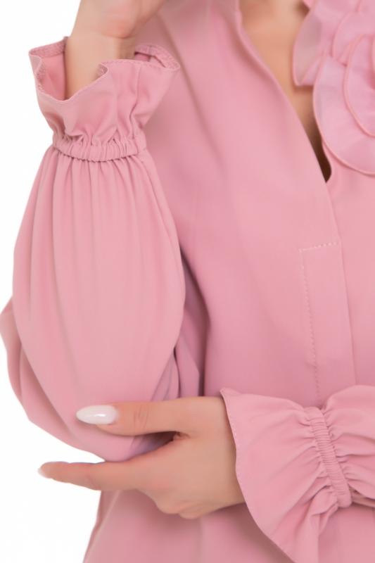 Хит сезона! Необыкновенно красивая и элегантная блуза с изысканным декором- само воплощение женственности. Блузка с изящным цветком из органзы, идеально впишется в любой гардероб: для создания делового образа, повседневного или праздничного. Можно носить как с классическими брюками и юбками, так и с джинсами или под сарафан. Прекрасно смотрится как в заправленном состоянии, так и на выпуск. Шелковистая струящаяся ткань практически не мнется, обладает износостойкостью, обеспечивает идеальный комфорт. Блузка продуманного и универсального фасона, идеально подходящего под любой низ. Воротник стойка, рукав длинный, на резинке с красивой рюшей по низу Модель выполнена из мягкой блузочной ткани высокого качества. Цветок из органзы выполнен на подложке и пришит к блузе одной строчкой, которая легко убирается. Убрав эту строчку, Вы можете носить цветок как брошь