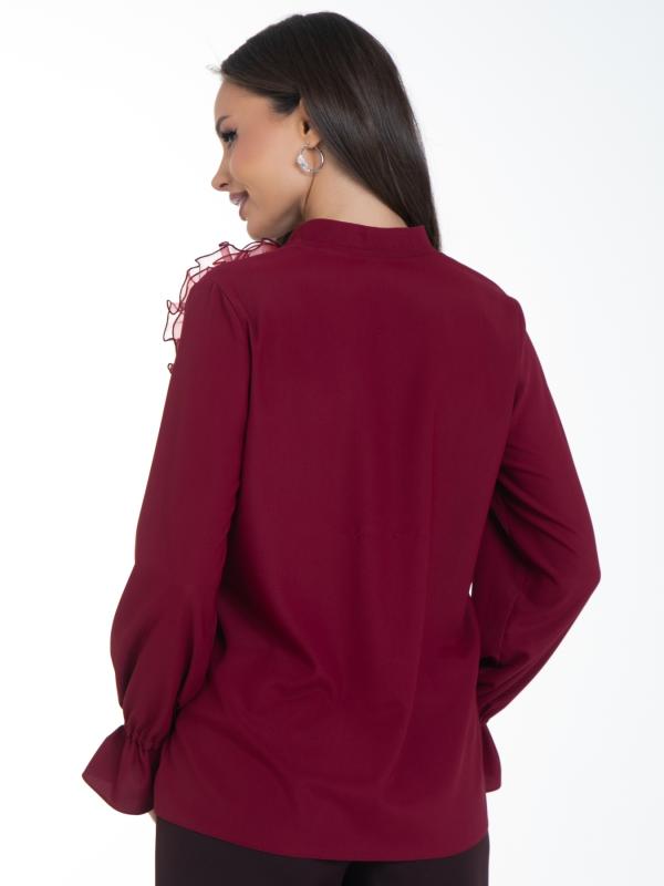 Трендовая стильная блузка с рюшей - это идеальное сочетание стиля, моды и женственности. Классический дизайн этой блузы делает ее универсальной и подходящей для любого времени года. Красивые объемные рукава придают особенную изысканность. Блуза выполнена из высококачественной ткани и обладает идеальной посадкой. Носите эту блузу в сочетании с юбкой или брюками для создания стильных и модных образов. Модель выполнена из блузочной ткани высокого качества