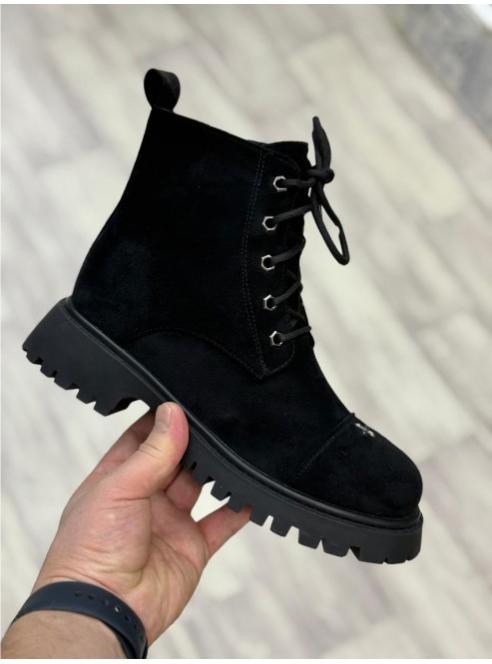Женские осенние ботинки. Практичные и удобные, эти ботинки идеально подходят для повседневной носки. Изготовленные из искусственной замши, они обладают дышащей структурой и комфортной посадкой. Ботинки имеют эластичные вставки, надежную шнуровку и прочную подошву с рельефным рисунком. Умеренная толщина подошвы обеспечивает хорошую амортизацию и стабильность при ходьбе. Дизайн дополнен декоративными элементами в виде тисненого логотипа и рельефного шва по краю.