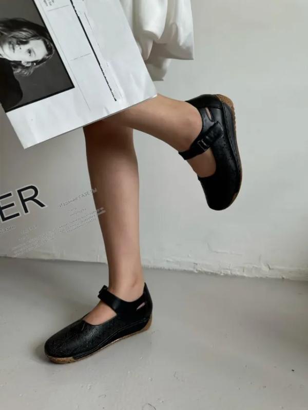 Женские весенние туфли. Удобные и стильные туфли с перфорацией, изготовленные из искусственной кожи, предлагают комфортный и дышащий вариант для весеннего сезона. Легкая и прочная подошва обеспечивает надежную поддержку. Отсутствие шнуровки и застежек делает их легкими в использовании. Подходят для повседневной носки.