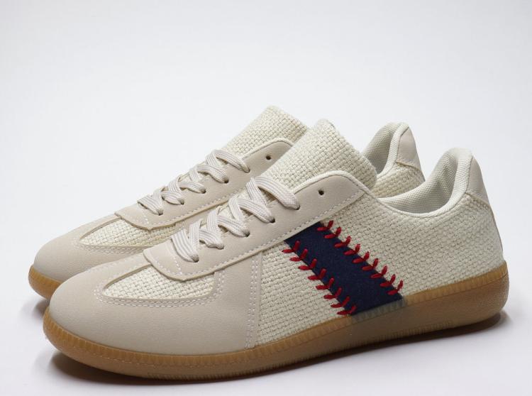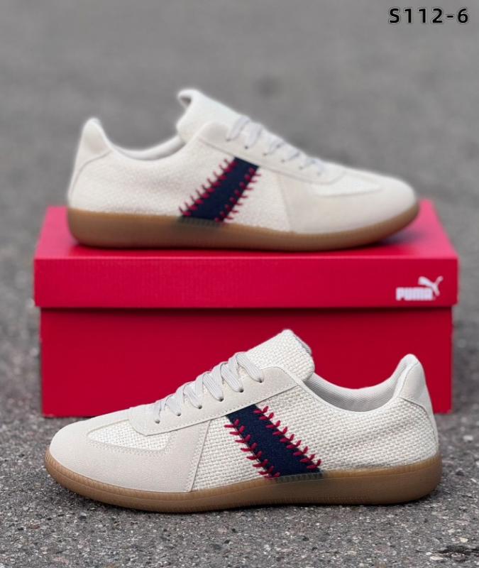 Мужские весенние кроссовки. Эти кроссовки представляют собой практичную и удобную обувь, идеально подходящую для весеннего сезона. Они изготовлены из прочного текстильного материала, обеспечивающего комфорт и дышимость. Кроссовки имеют характерный дизайн с диагональной нашивкой контрастного цвета и красными стежками, добавляющими стильный акцент. Подошва выполнена из резины и имеет светло-коричневый цвет, что придает обуви современный вид. Кроссовки оснащены удобной шнуровкой, позволяющей надежно зафиксировать ногу. Они подходят для повседневной носки и могут использоваться как для прогулок, так и для занятий спортом. Благодаря своему нейтральному белому цвету, эти кроссовки легко комбинируются с различными образами одежды.