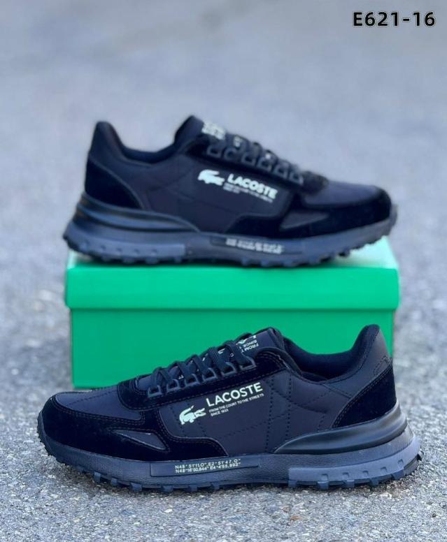 Мужские осенние кроссовки. Эти кроссовки представляют собой практичную и удобную обувь, предназначенную для активного образа жизни. Изготовленные из комбинации искусственной кожи и текстиля, они обладают дышащей и прочной конструкцией. Кроссовки имеют шнуровку для надежной фиксации на ноге, а их толстая подошва обеспечивает комфорт и амортизацию при ходьбе. Дизайн включает в себя элементы брендинга Lacoste, добавляя стильный акцент к общему виду. Кроссовки идеально подходят для повседневной носки в осенний сезон.