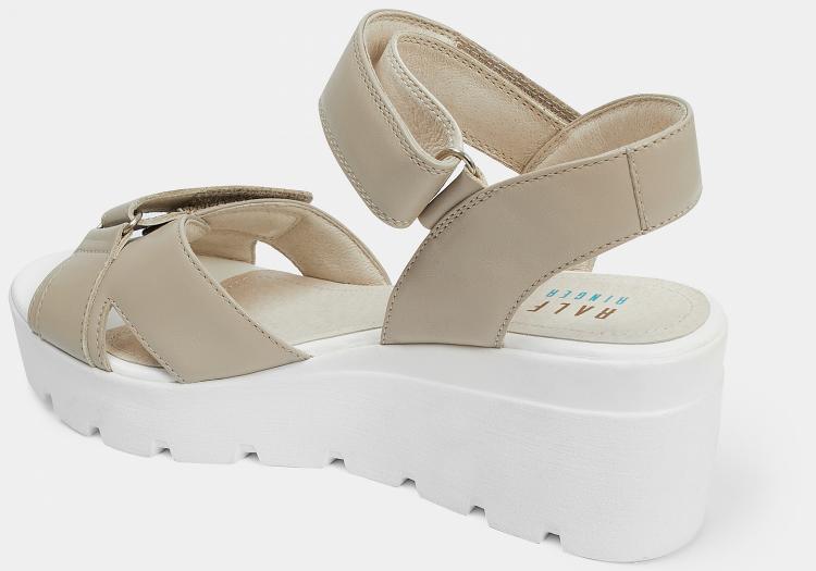 Босоножки женские БЕТТИ из натуральной кожи бежевого цвета. Широкие скрещенные лямки не давят и не натирают, кожаные подкладка и стелька позволяют ногам дышать, босоножки комфортно носить на голую ногу. Застежки-липучки регулируют посадку. Танкетка из полиуретана высотой 6 сантиметров легкая и подходит на каждый день. Сочетайте босоножки бежевые на танкетке с платьями и сарафанами.