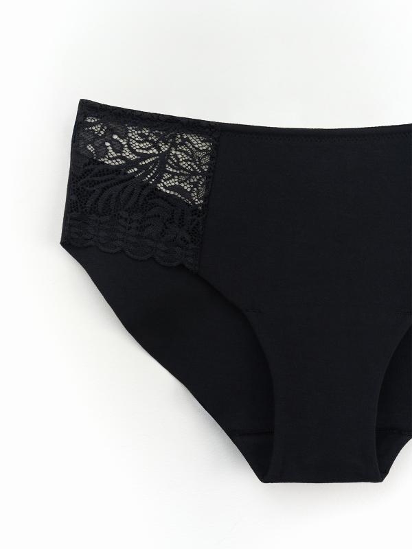 Классические женские трусы слипы — комфортная модель на каждый день. Базовый черный цвет, мягкая резинка и высокая посадка — такие трусы легко сочетаются с гардеробом. Украшают модель кружевные вставки. Сшиты из качественного хлопкового трикотажа, небольшое количество эластана в составе делает белье долговечным и тянущимся.