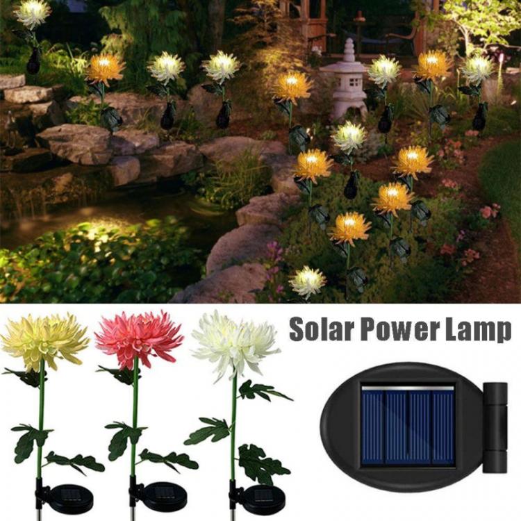 Садовый светильник ХРИЗАНТЕМА ЖЕЛТОГО, БЕЛОГО КРАСНОГО ЦВЕТА на солнечной батарее, 3LED, высота 70см,(цветы из ткани), в упаковке 1 штука