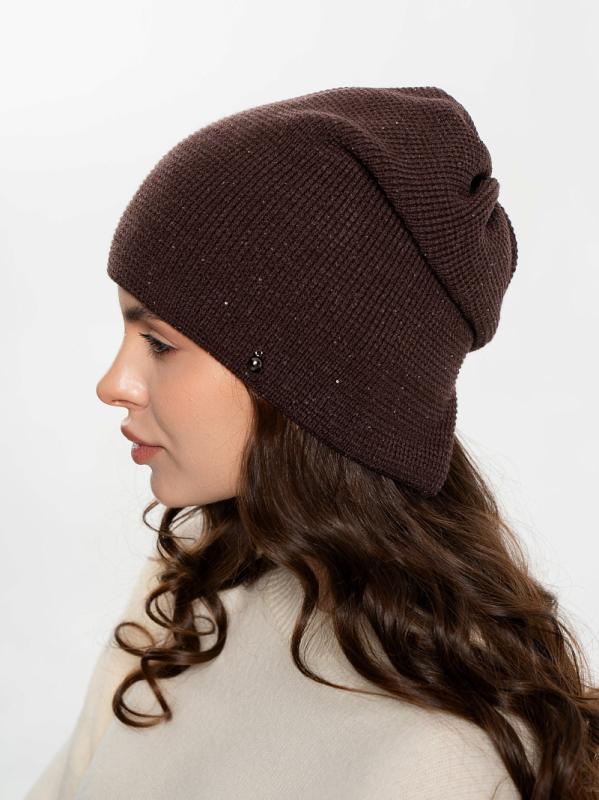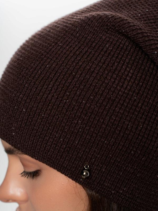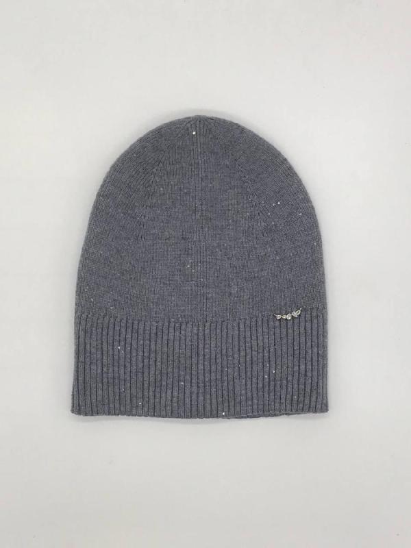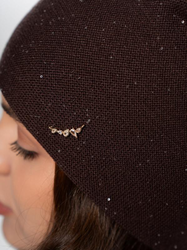 Шапка двойная с закладкой на макушке,с пайеткой и металлическим декором