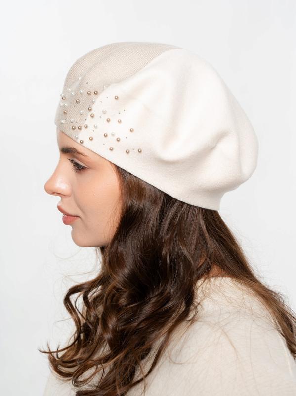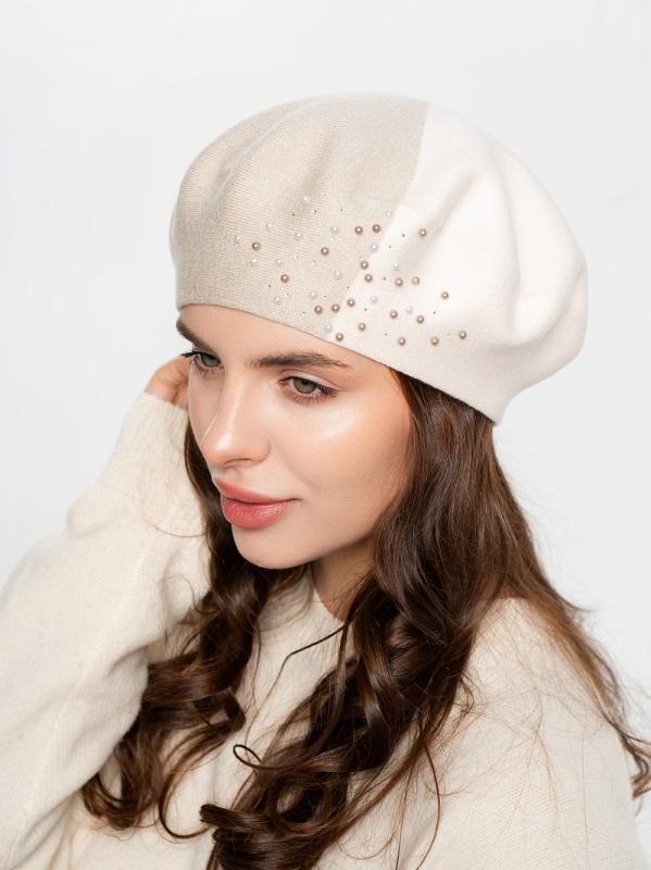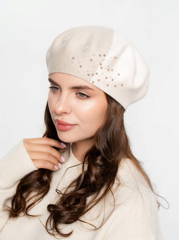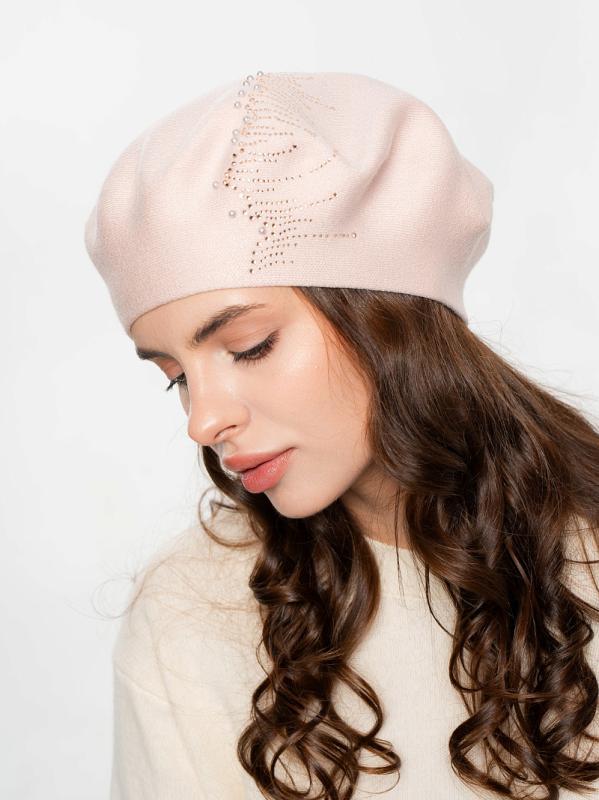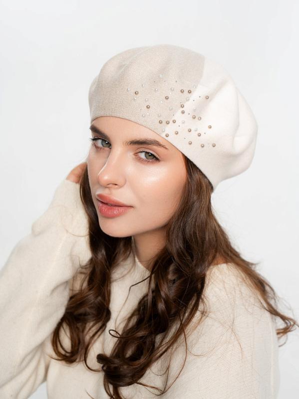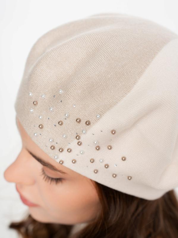 Берет полуторный со стразовым мотивом и жемчугом