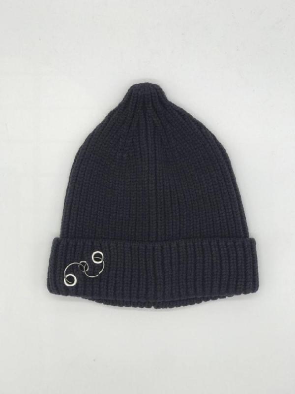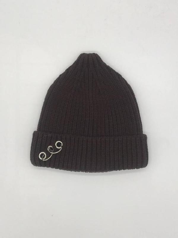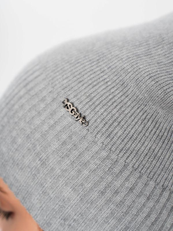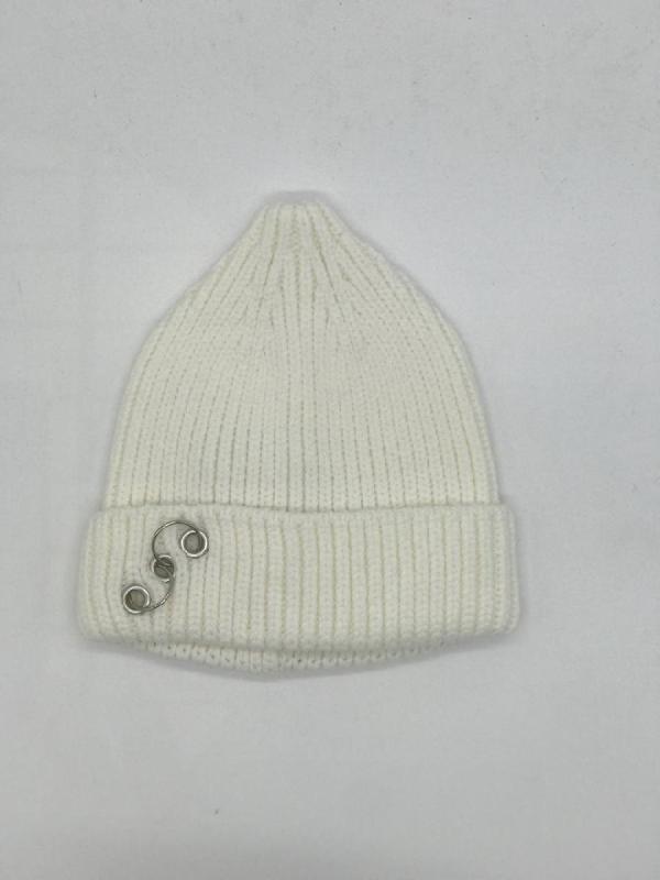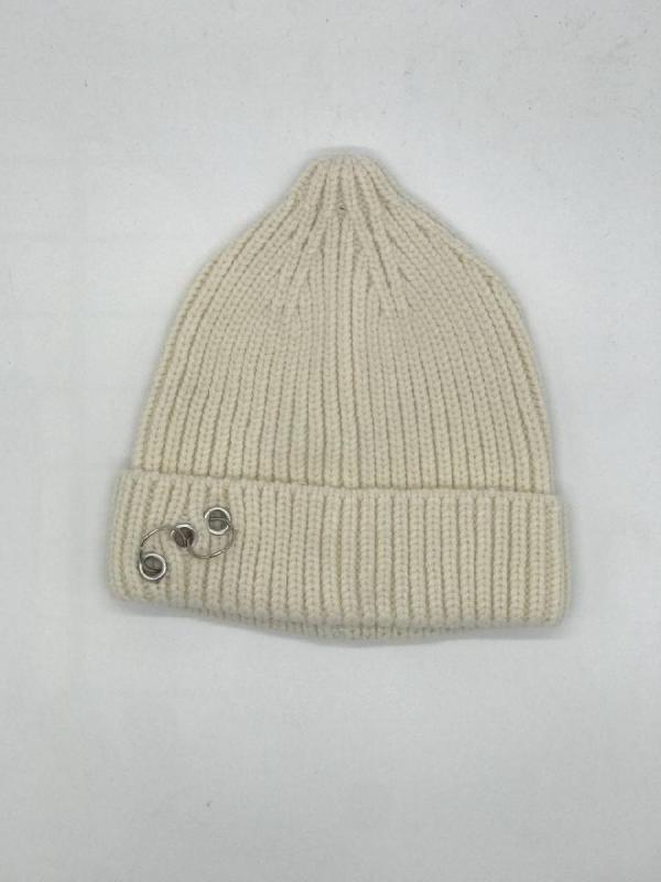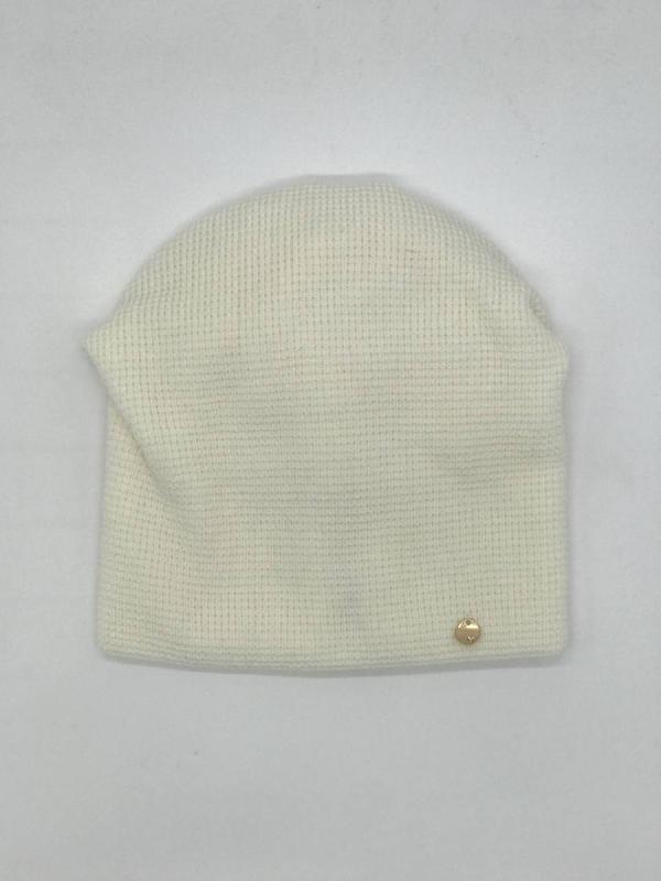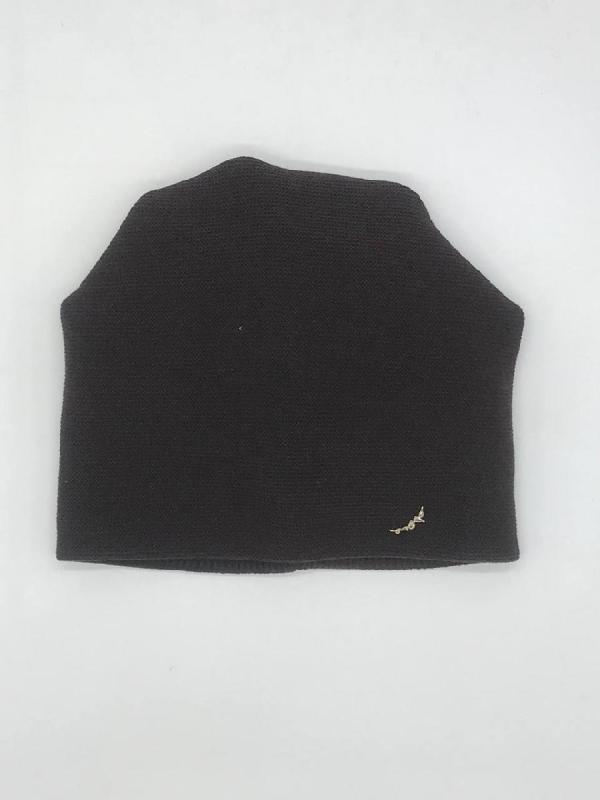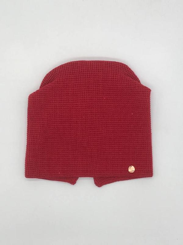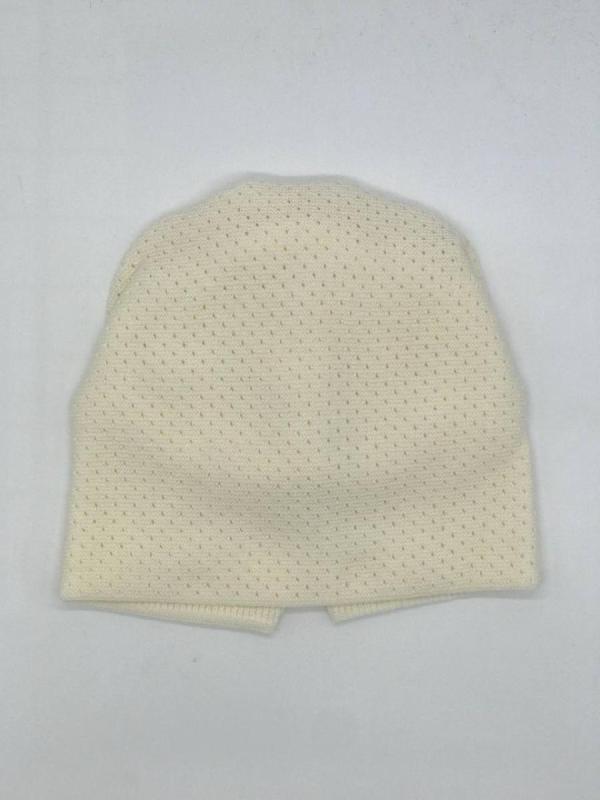 Шапка двойная, фактурной вязки, с металлическом декором ,расшивкой сзади и разрезом