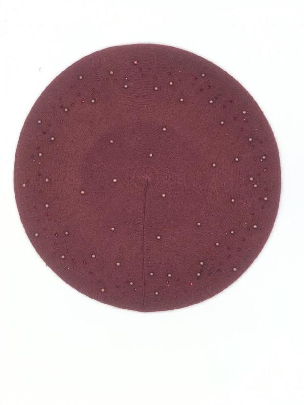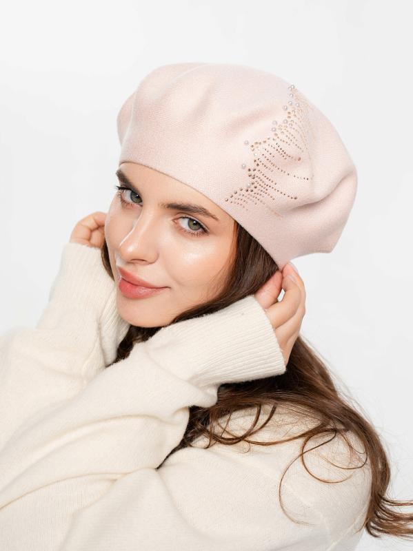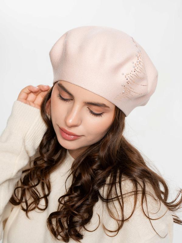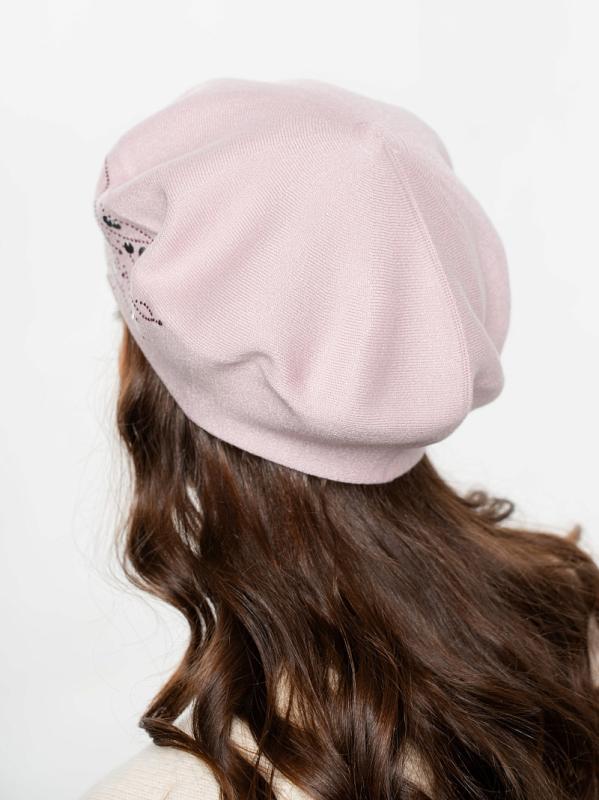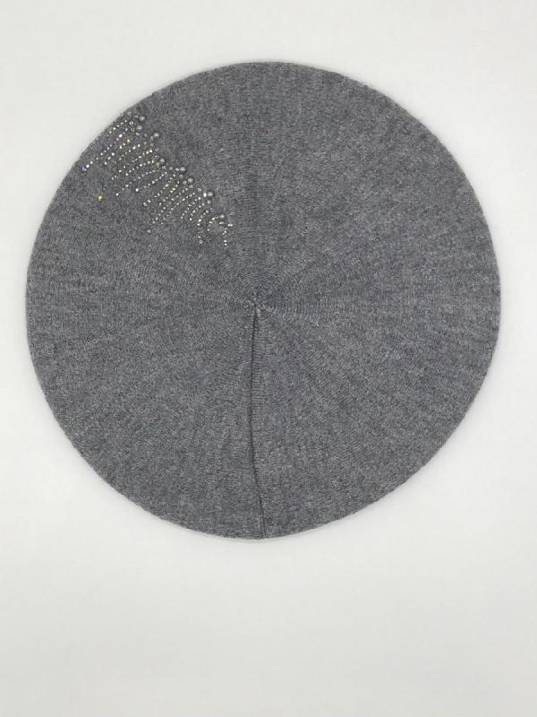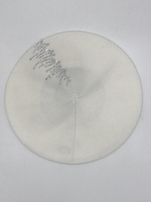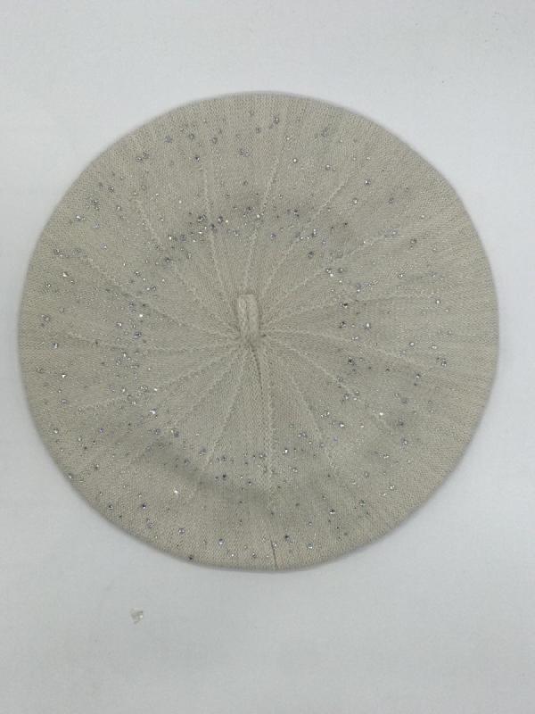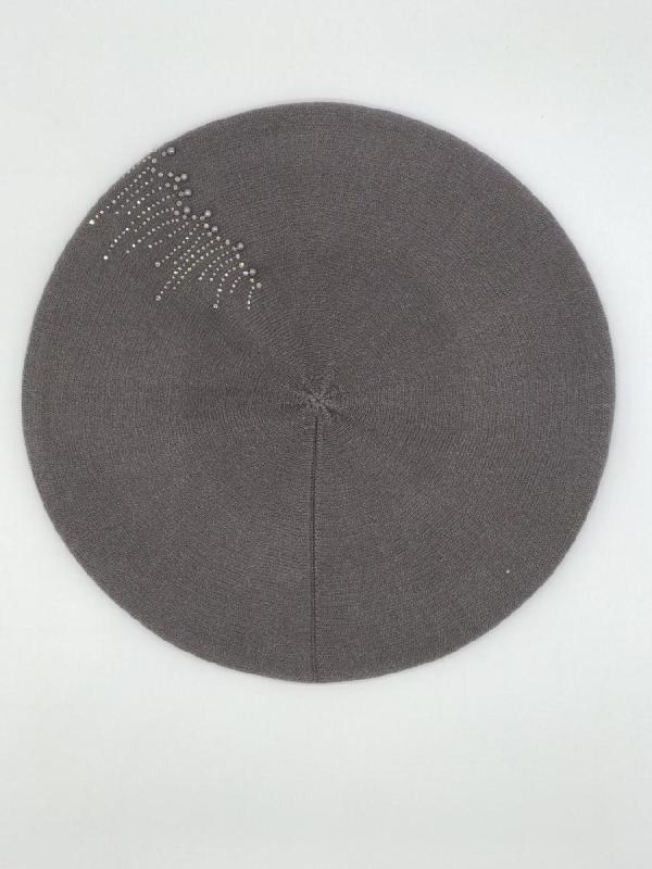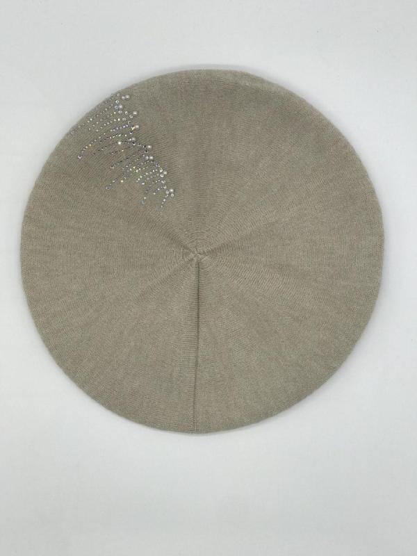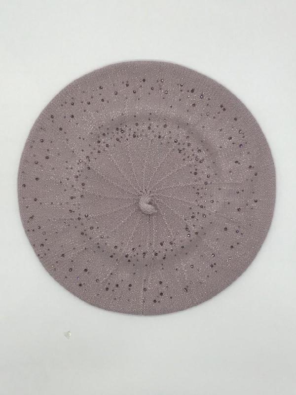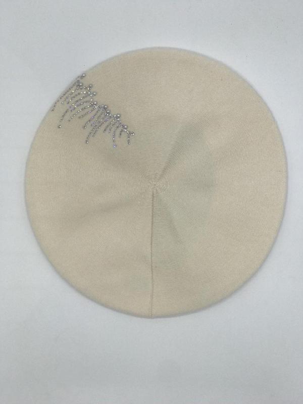 Берет однослойный с руликом и со стразовым мотивом и люрексом