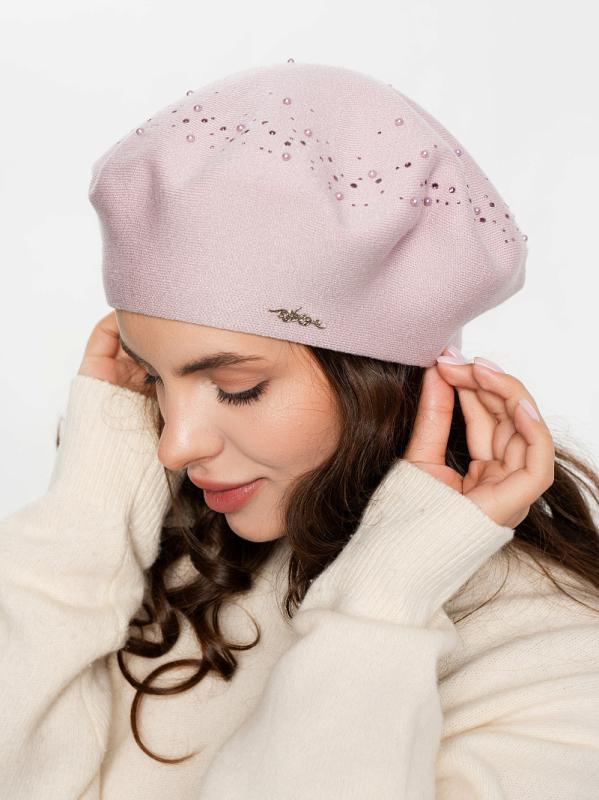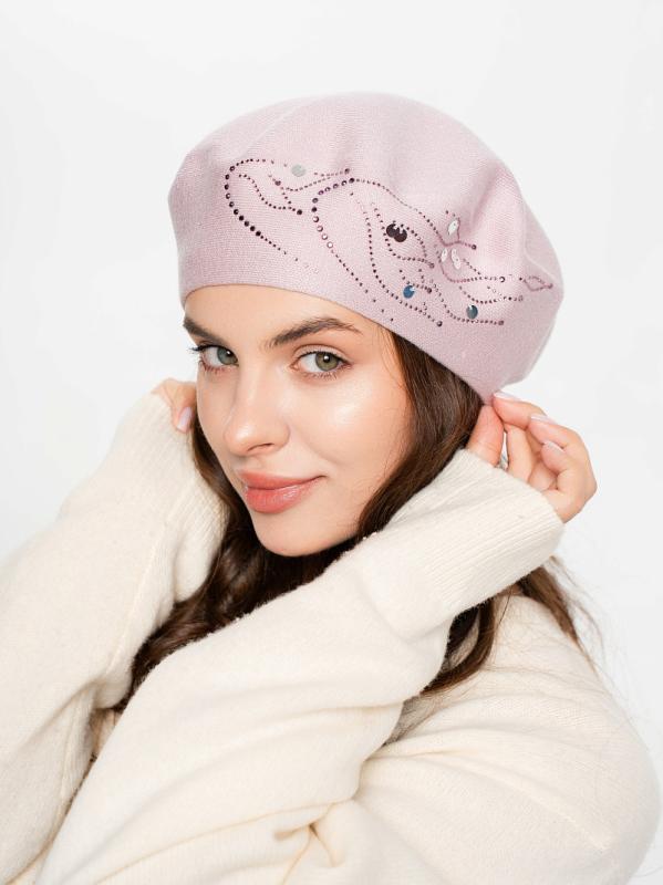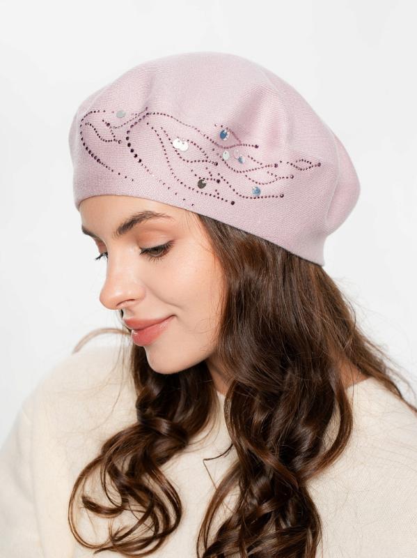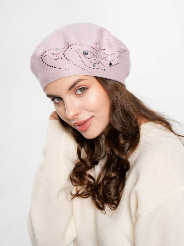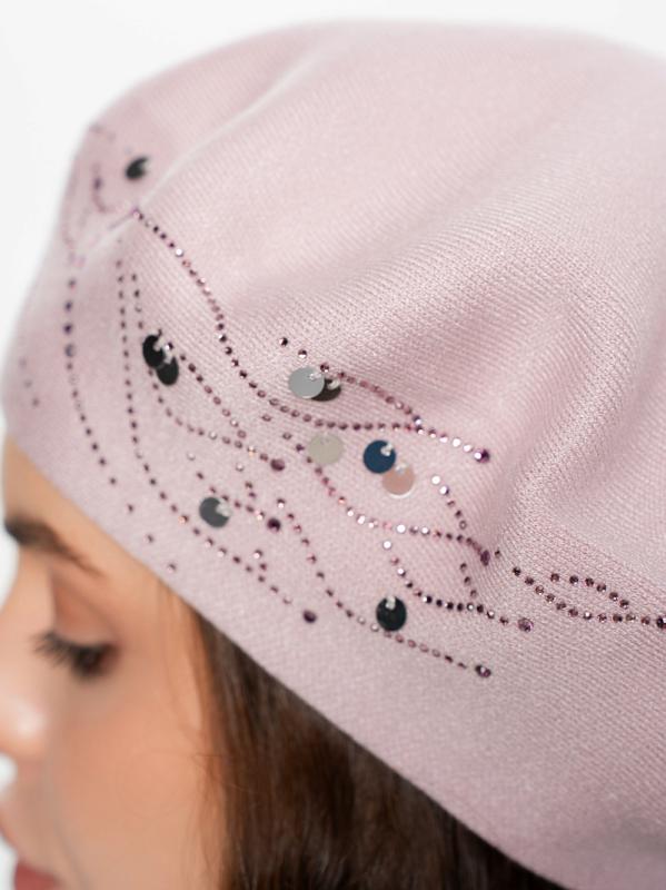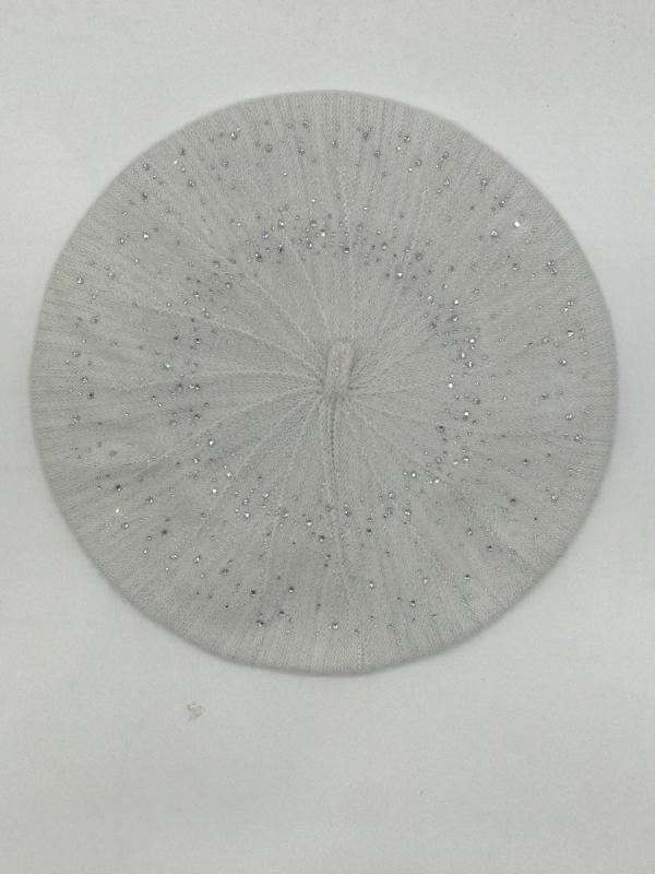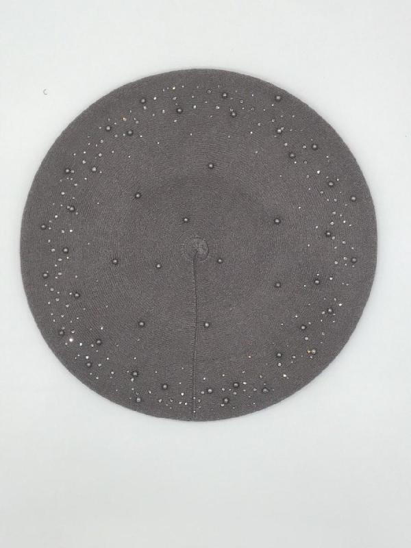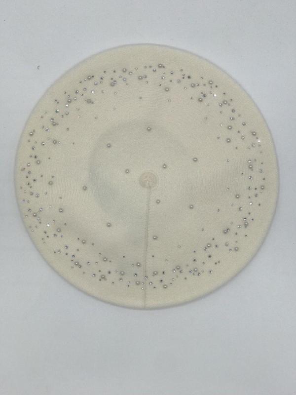 Берет полуторный со стразовым мотивом и пайеткой