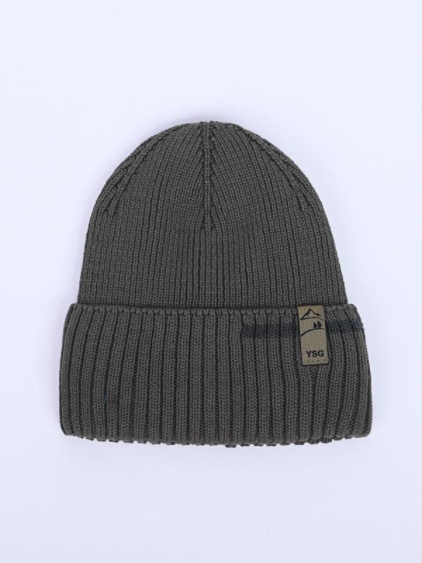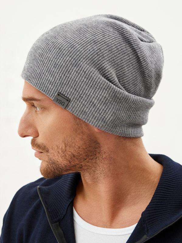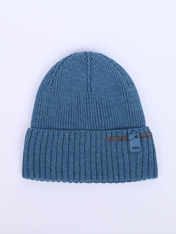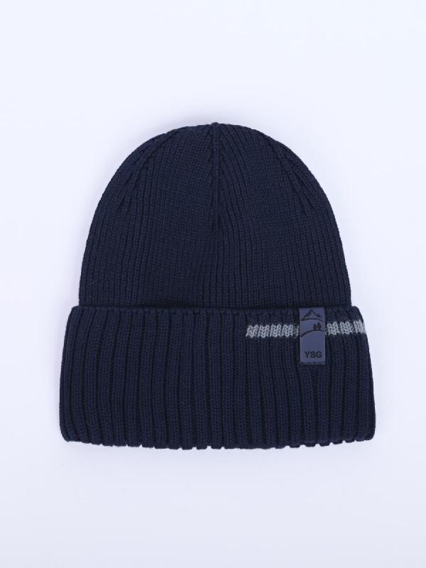 Шапка с отворотом и фирменным декором