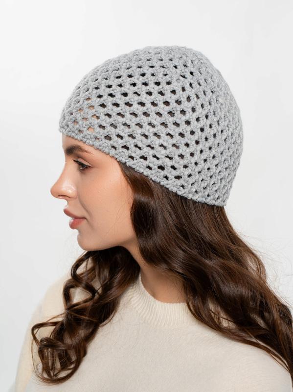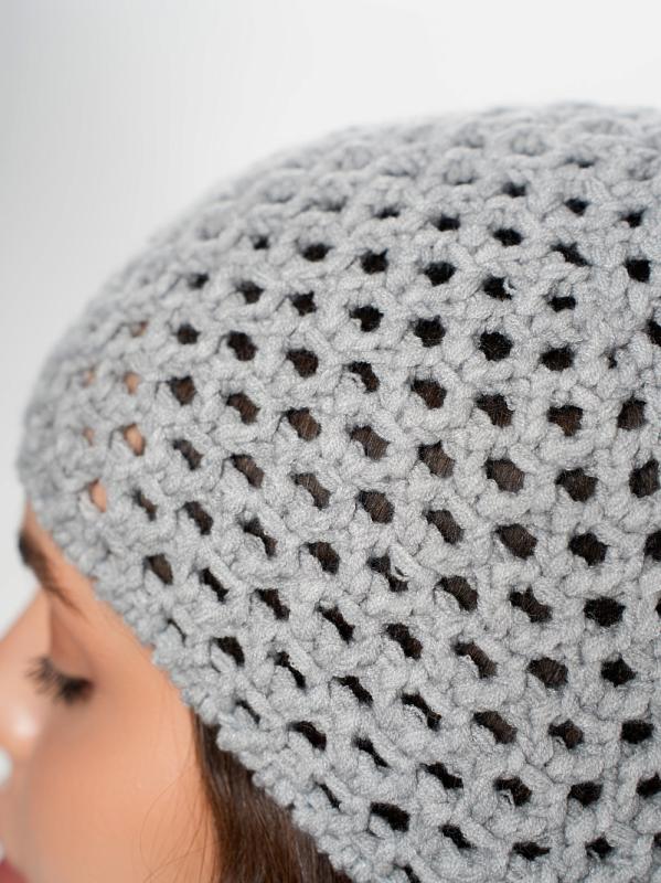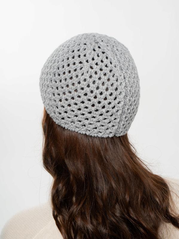 Берет однослойный крупной вязки с металлическим декором