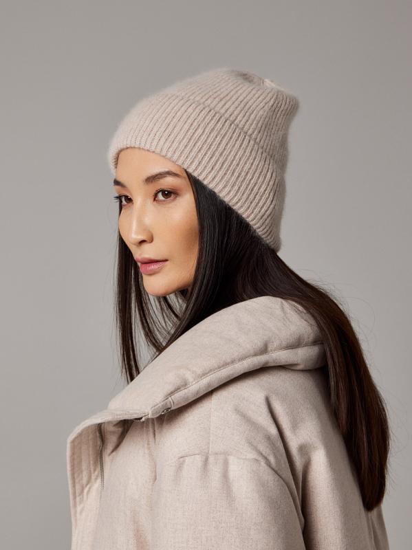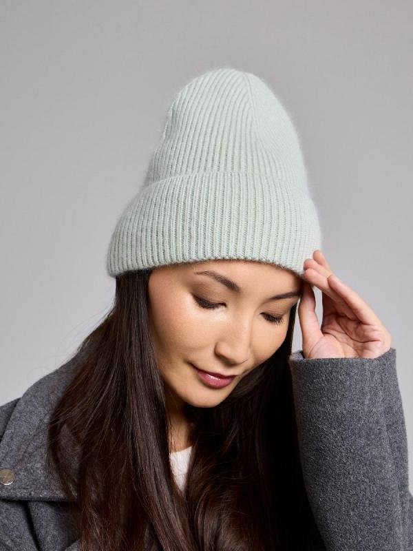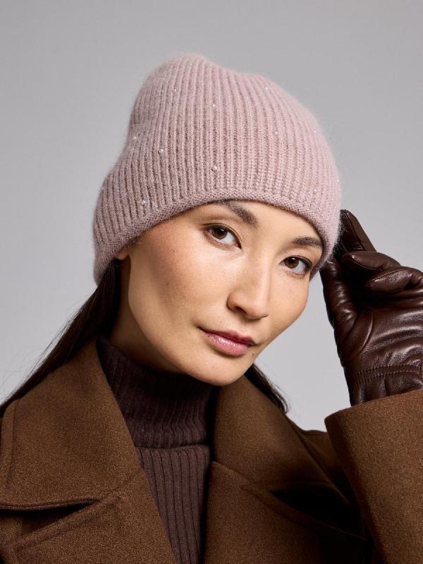 Шапка двойная с ангорой, без отворота, вставки элементов из жемчуга.
