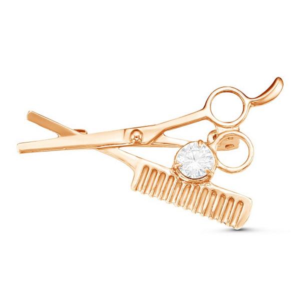 Брошь Ножницы и Расческа из золоченого серебра с фианитом Код товара: 0323737